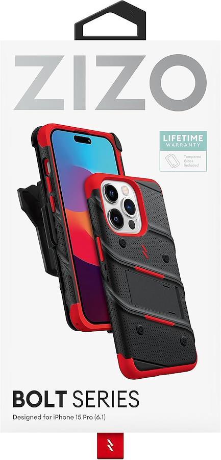 ブランド:Zizo (米国)、対応機種:AppleiPhone 15 Pro (6.1インチ)(2023年発売)、商品内容:ケース本体、液晶保護ガラス、ランヤード、各1pcs、(*iPhone15には適合しません)