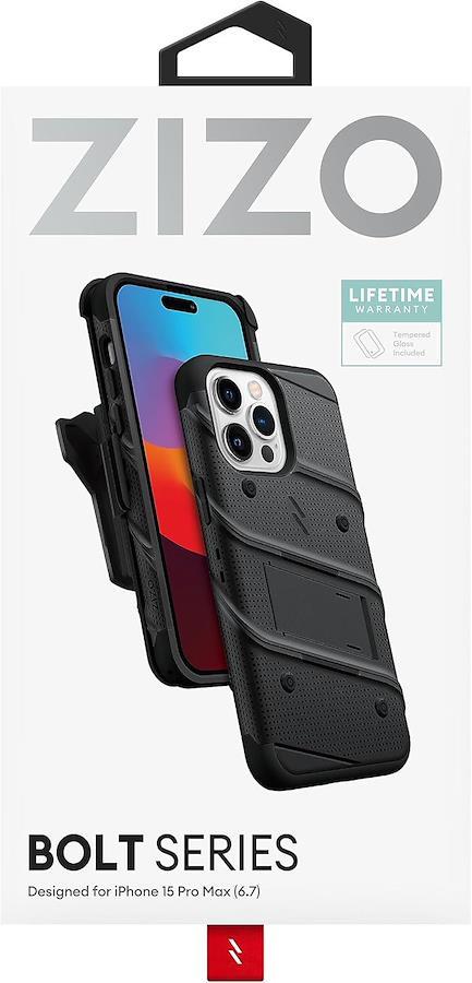 *ブランド:Zizo (米国)、対応機種:AppleiPhone 15 Pro Max (6.7インチ) (2023年発売)、商品同梱内容:ケース本体、液晶保護ガラス、ランヤード、各1pcs、