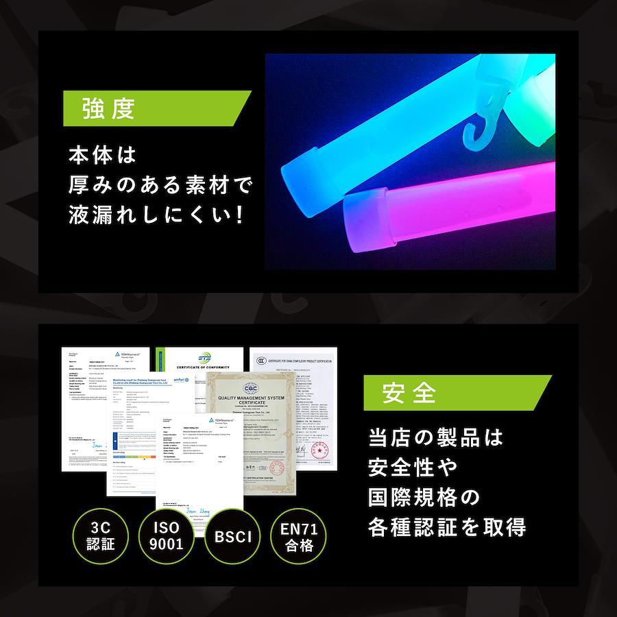【”推し”や会場と一体感を味わえる】ポキッと折りやすく、発光時間が長いので屋内外のライブやイベントにぴったりなケミカルライト。お好きな色や”推し”のメンバーカラーで会場と一体になって盛り上がれること間違いなし。また、発色が鮮やかなので、オタ芸や誕生日などのパーティー、結婚式、文化祭、学園祭、コンサート、推し活、キャンプ、縁日、夏祭り、サバゲー、ハロウィン、クリスマスなどで使用しても盛り上がります。【8~12hの長時間発光で災害用にも】発光時間は約8~12時間と長時間。継続的に長く輝き続けるので、地震や災害、停電などの緊急時の災害グッズとしてもご使用いただけます。使用期限の目安も約2年と長く、大きさもコンパクトなので、防災バッグの中に入れておくのもおすすめです。避難グッズ、防災グッズとして備えましょう。【液漏れしにくい安心安全設計/国際規格認証を取得した工場で生産】お客様の安心安全を第一に考えた、液漏れしにくい商品です。サイリウム ライト外側の管壁を厚く設計しており、液漏れの心配なくご使用いただけます。また、ISO9001(品質マネジメントシステム規格)、EN71(玩具の安全性に関する規格)の国際規格認証を取得した工場で生産しています。【全7色展開の大容量セット】色は緑・青・黄・オレンジ・ピンク・赤・白の7色。注文のバリエーションも豊富で、ミックス14本(全7色×2本ずつ)、21本(3本ずつ)、35本(5本ずつ)、緑・青は21本または35本、黄・オレンジ・ピンク・赤・白は21本でご購入いただけます。コンサートライト、ペンライトとして仲間にシェアしてルミカライトを楽しもう。ヲタ芸用サイリウム ペンライトにもぴったりです。【商品仕様】本製品はレッド 21本セット ペンライトです。サイズ:長さ 約15cm、直径(底部の一番太い部分17mm)。長期保存可能なファスナー付きアルミ袋入り、使い終わらず余ってもしっかり保管できます。【使用方法】①ケミカルライトの両端を両手で掴み、ポキッと音がなるまで軽く折り曲げて下さい。②中の液体が全体に行き渡るまで軽く振って下さい。【免責事項】メーカーによる商品リニューアルに伴いパッケージ(内容量も含む)変更が行われた場合、新パッケージでお届け致します事ご了承願います。