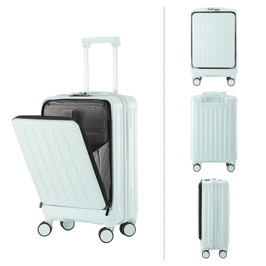 ちょっとした荷物が取り出しやすいフロントオープンタイプ。前ポケットの内部にパソコン、タブレット、携帯電話、手帳などの小物用にこまかく仕切られたスペースがあるため、ビジネスツールを効率よく収納できます。本体収納部にはファスナーポケットもついているので小物の収納にも便利です。軽くてサイズも小さいので、女性でも持ち運びが楽にできます。ロックはちゃんと付いているので安心して預けられます。 【前開きポケット】前開きポケットの設計により、出し入れ簡単です。16インチのPC、モバイルバッテリー、ipadなどを十分に収納でき、移動中の出し入れには便利です。新幹線の中でも、旅の途中でも、フロントポケットから出したいものを簡単に取り出すことができ、ビジネスシーンにも活躍しています。 【TSAダブルロック 3段階調節キャリ―バー】旅行箱は世界基準施設TSAロックを搭載するので、施錠したままで預けることができて、トラベルに安心できます。ダイヤル式ロックは二つあり、メインスペースとフロント部分の両方に対応でき、より安心。身長や用途に合わせ、3段階調節できるキャリーバーも装備。キャリーバーを各段階に調節する場合、一度キャリーバーを一番下まで下ろしていただき、そこから上げる形で段階調節を行ってください。 【全輪360°回転静音性キャスター】耐摩耗性に優れているゴムを材質にしたキャスター。静穏、耐久性に優れた冲撃吸収超静音キャスターは、自由に360度回転し、ダブルキャスターが付属していて、旋回時や悪路の走行も安定していて、お旅をより快適にします。*キャスターは取り外し交換する可能! 【幅広いシーンで使えるシンプルなデザイン】軽量でありながら強度のあるスーツケース。シンプルでかわいいデザインになっており、男女を問わず、ご愛用いただけます。マジックテープを切り離し、フロントパネルをフルオープンにでき、荷造りも簡単。超軽量ですから海外のトラベルやビジネス出張に便利です。 【コンパクトサイズ 収納たっぷり】メイン収納部は普通のスーツケースと同じ内部構造で、荷崩れ防止のクロスベルト、荷物が露出しないウェットポケット、メッシュポケットなど内装も充実しています。○Sサイズ (幅×奥行×高さ) 56.5cm x 23cm x 35.5cm 本体重量 :約3.4kg(付属品含まず) 容量:約41L(1~3泊対応)※ 多少の誤差は