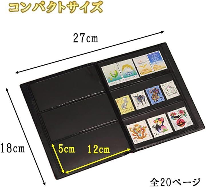 コンパクトサイズの切手アルバム 全20ページ アルバムサイズ 18cmx14cm 1ページの切手収納部 5x12cm3段 切手収納枚数 約180~240枚