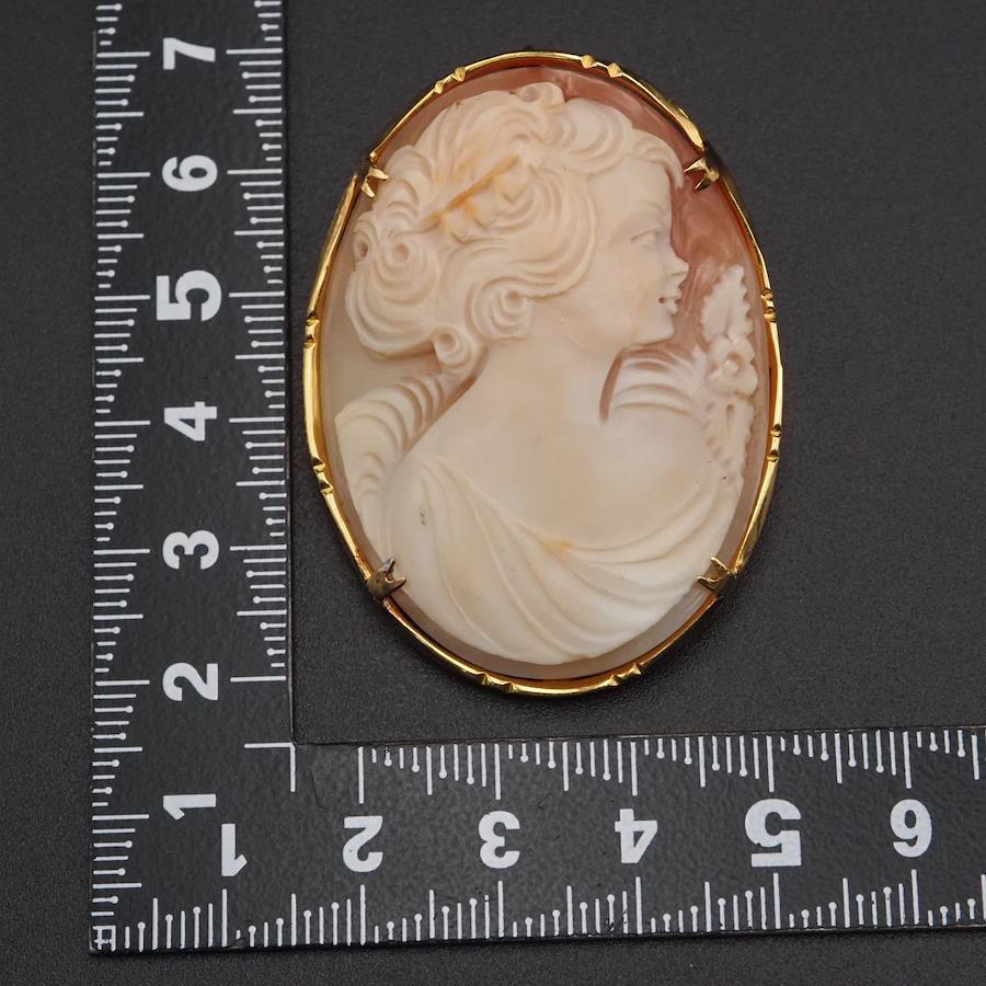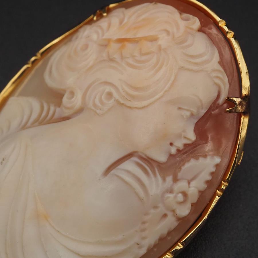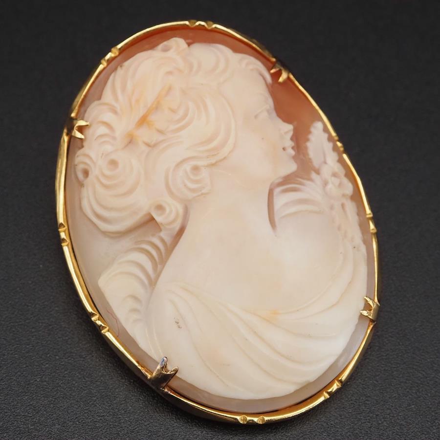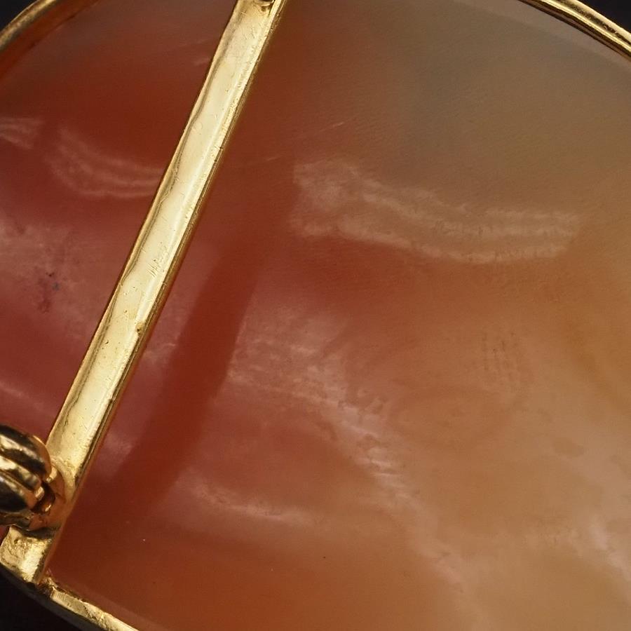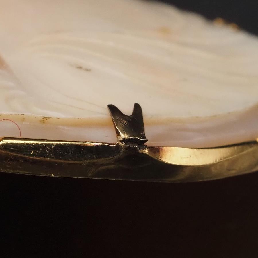 J507 シェルカメオ 作家サイン有 ブローチ 女性横顔 ゴールド デザイン ヴィンテージ