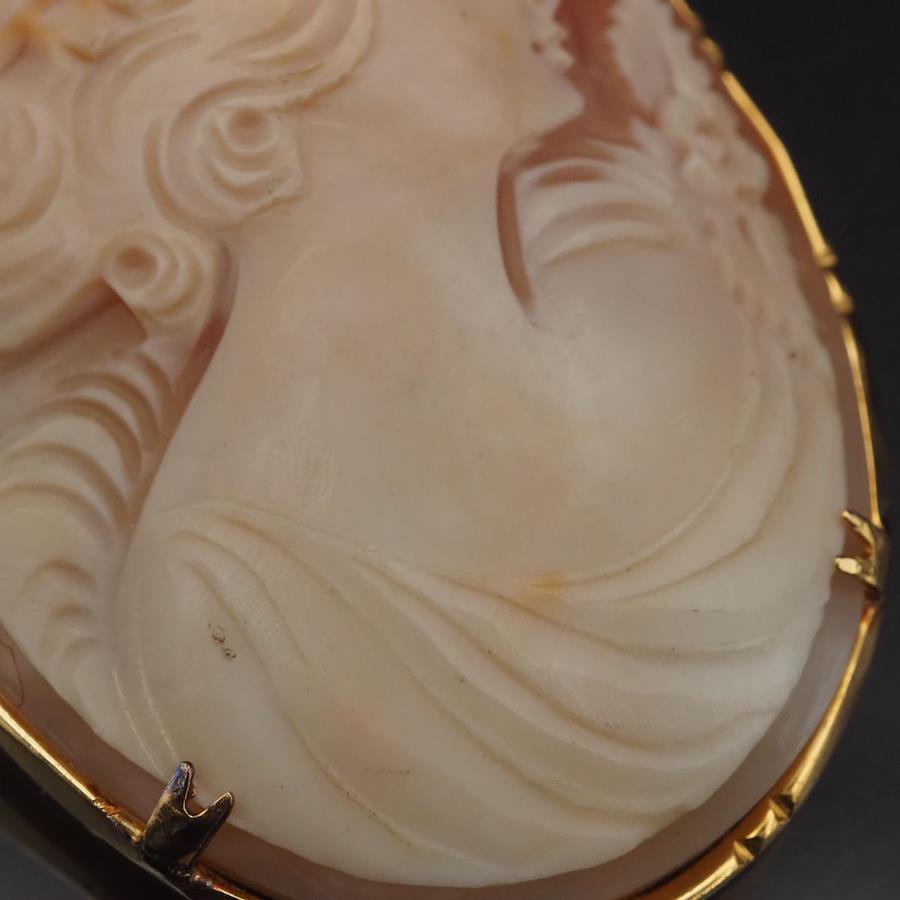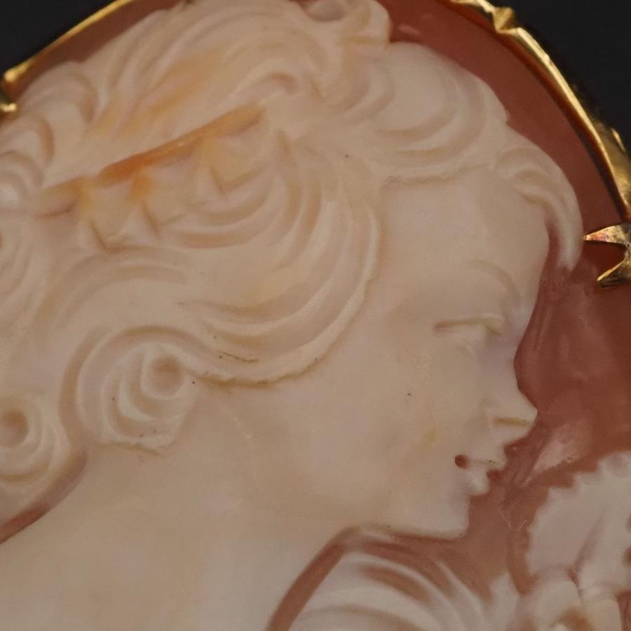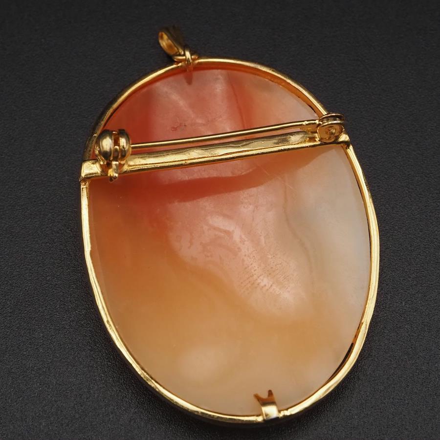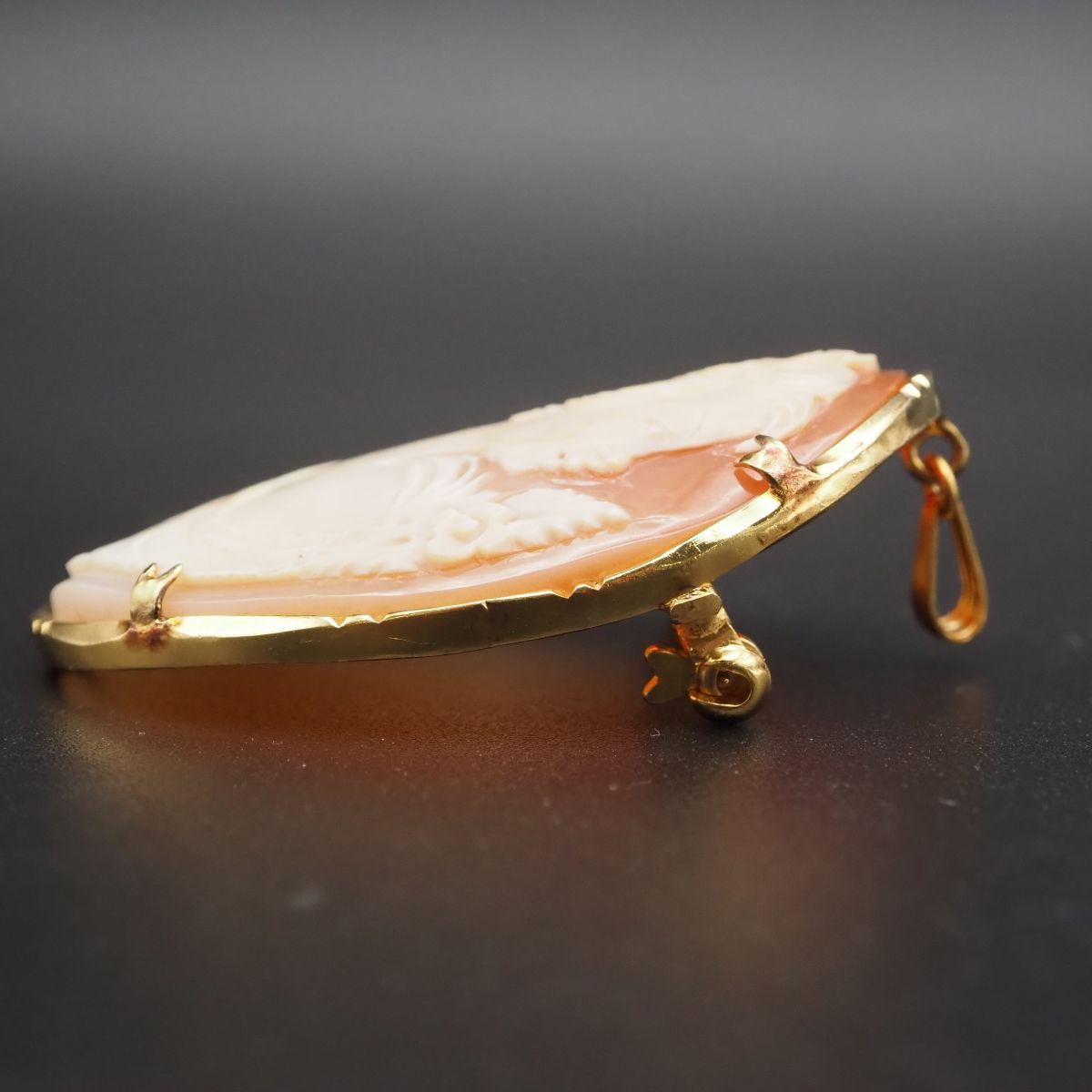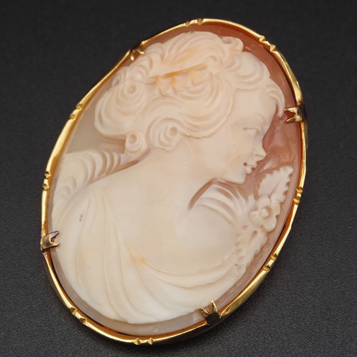 J507 シェルカメオ 作家サイン有 ブローチ 女性横顔 ゴールド デザイン ヴィンテージ