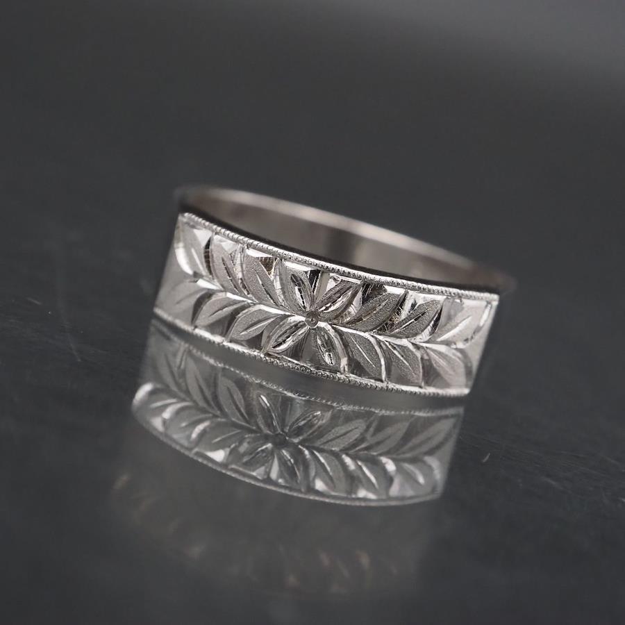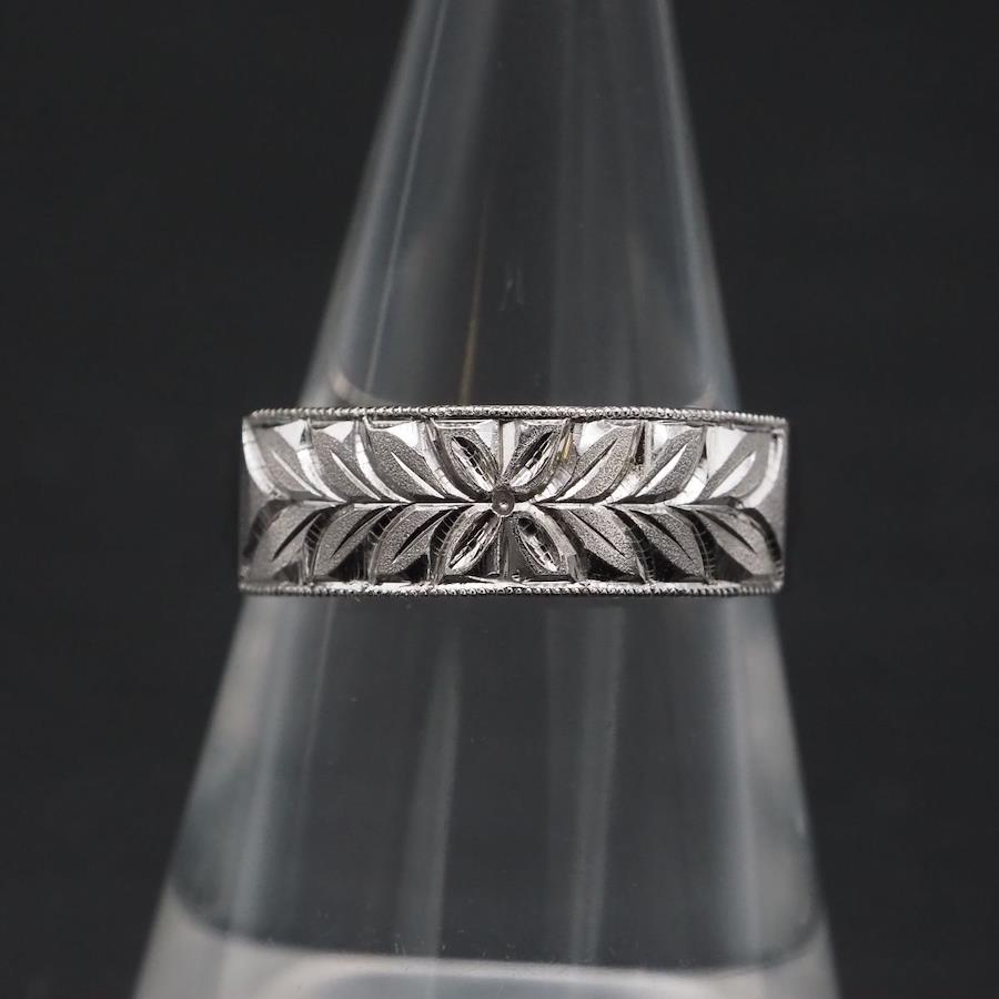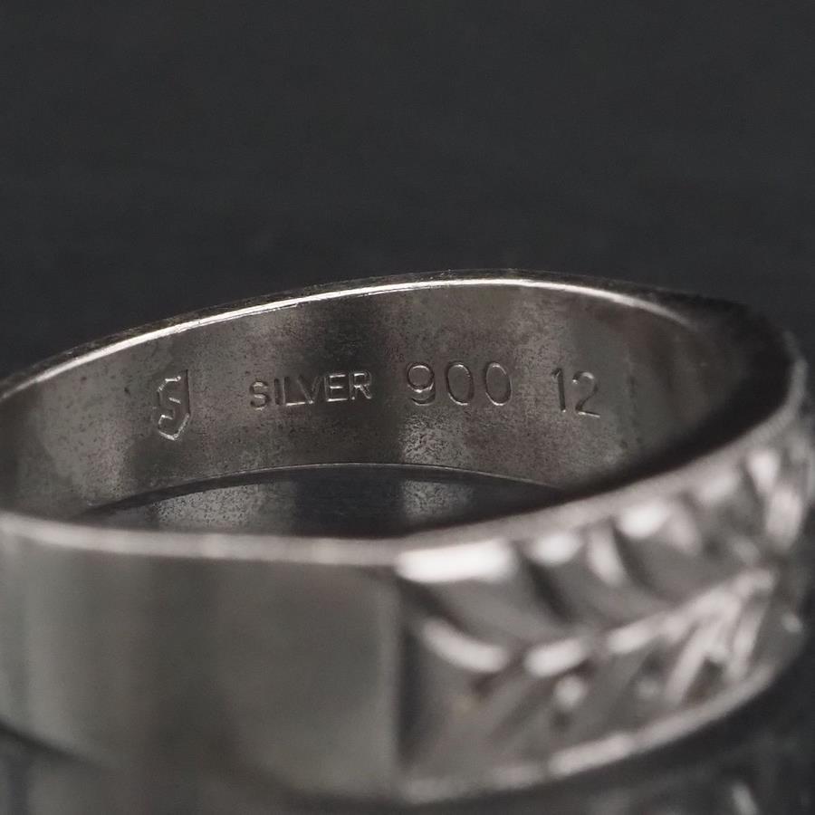 J708 ヴィンテージ SILVER900刻印 リング 彫刻 フラワー デザイン シルバー 指輪 12号