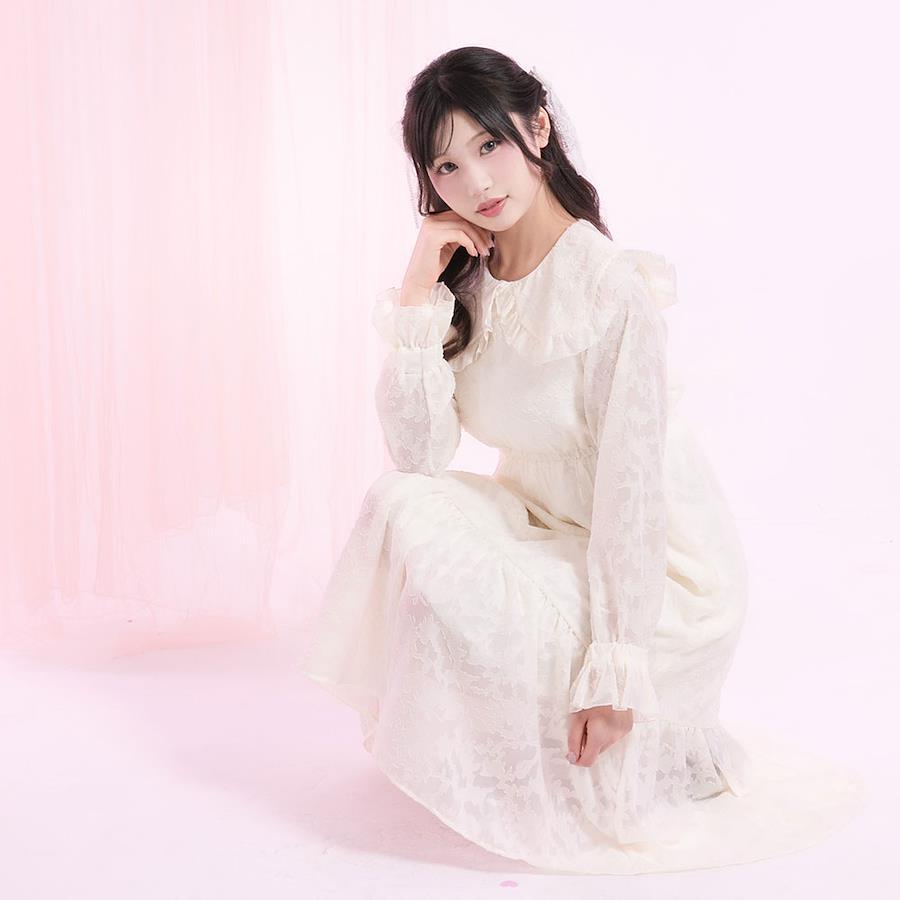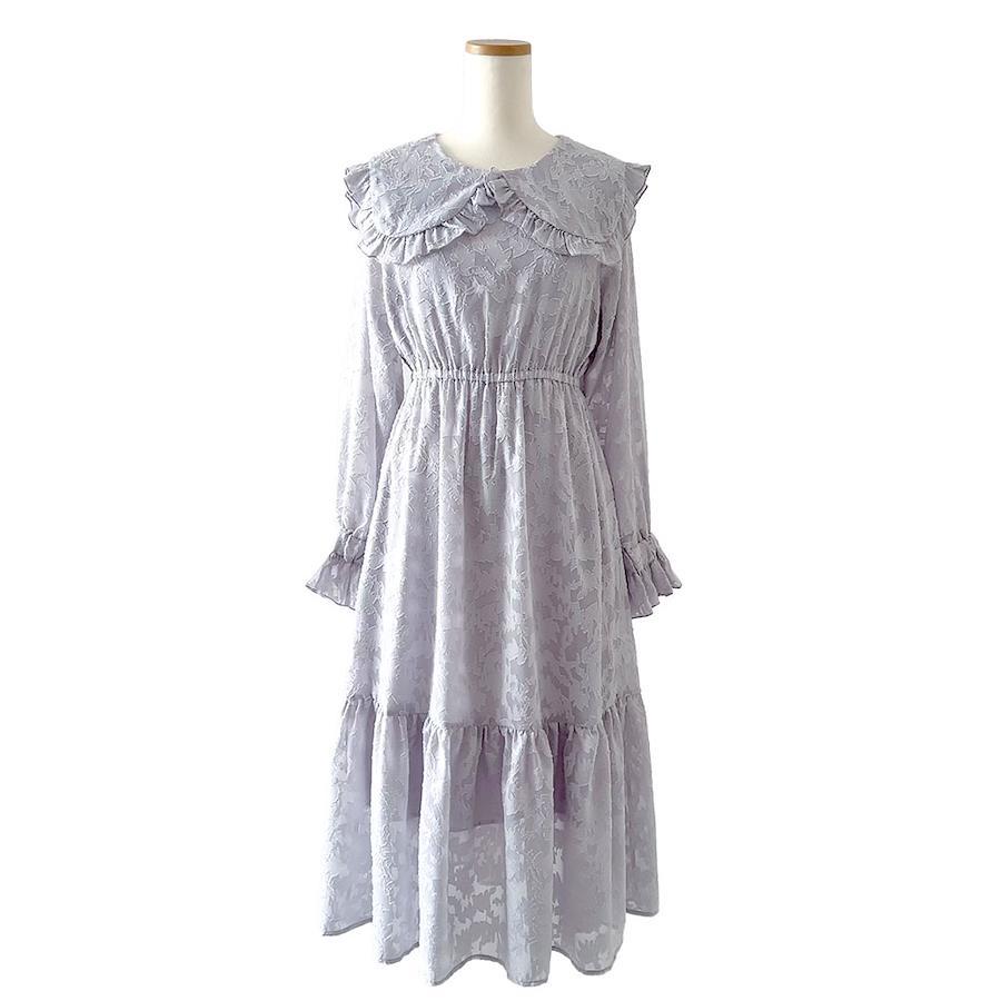 大きめなフリル襟が愛らしいジャガードワンピース。