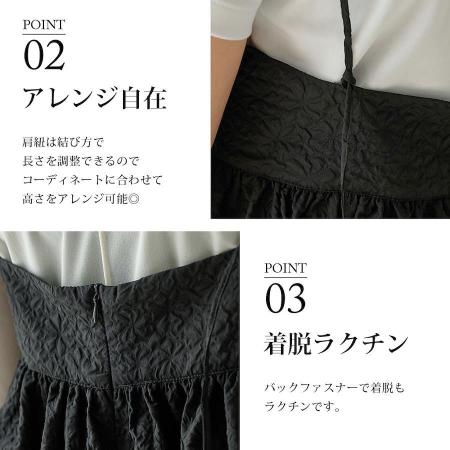 肩紐は結び方で長さを調整できるので、コーディネートに合わせて高さをアレンジ可能◎