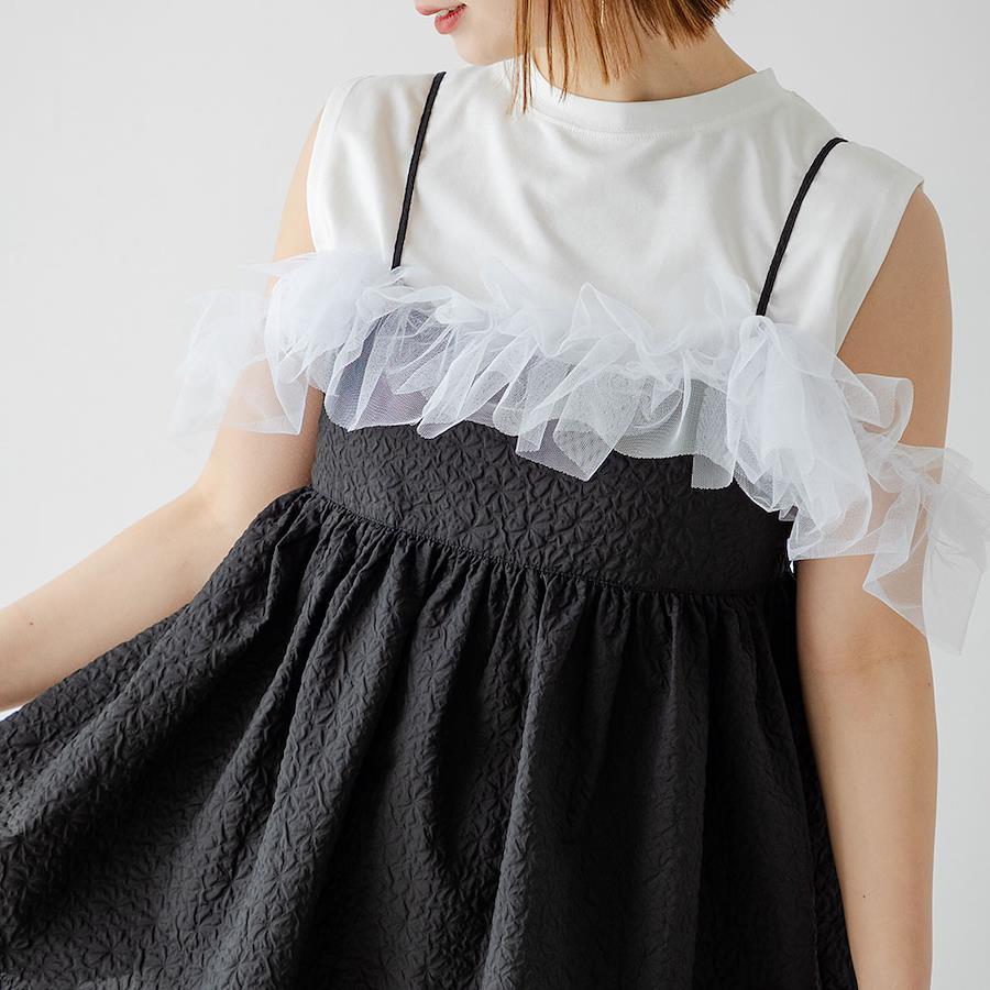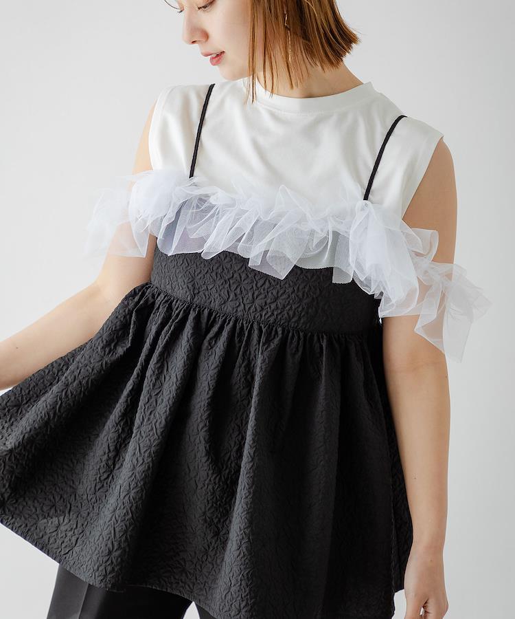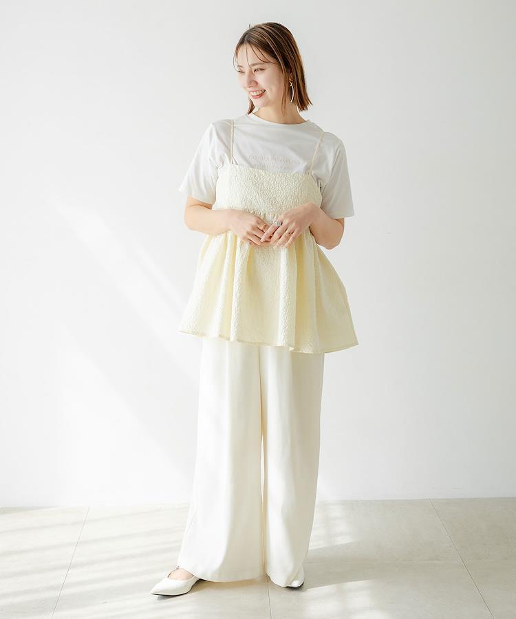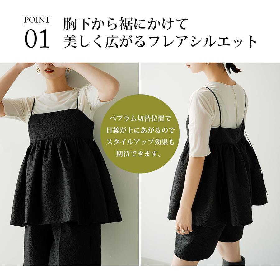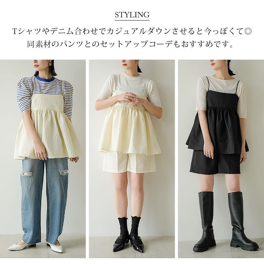 凹凸感のあるふくれジャガード素材が魅力的なペプラムキャミソール