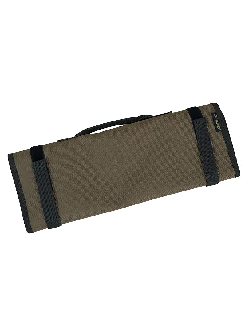 折りたたみ式ロールタイプのペグケース。30㎝ペグ18本収納可能。ハンマー専用収納付き。内側にファスナー付きメッシュ収納ポケット付き。