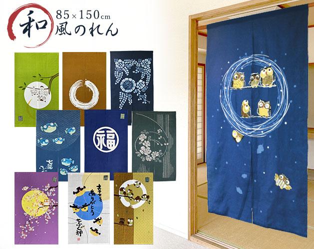 ★お洒落な和風のれん!落ち着いた柄の和風のれん。*お部屋のイメージチェンジ、間仕切りにと、和やかな空間を作ってくれます。*選べる全10型!簡単に模様替えや気分転換ができます。*洗濯:手洗い