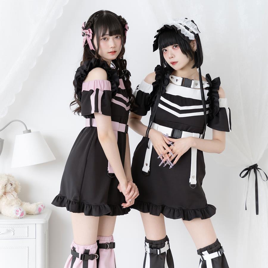 オフショルデザインの地雷パンクテイストなジャージワンピースです♪