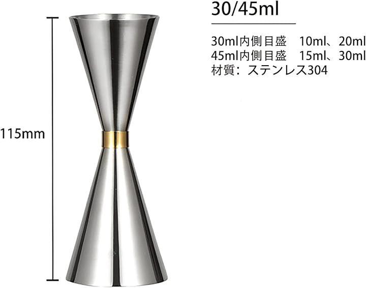 「ジガーカップ 30ml/45ml」ダブルヘッドのジガーカップ、容量は30mlと45mlです。