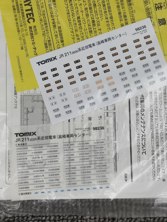 TOMIX98236の211系4両セットの付属品一式が入っています。※未使用