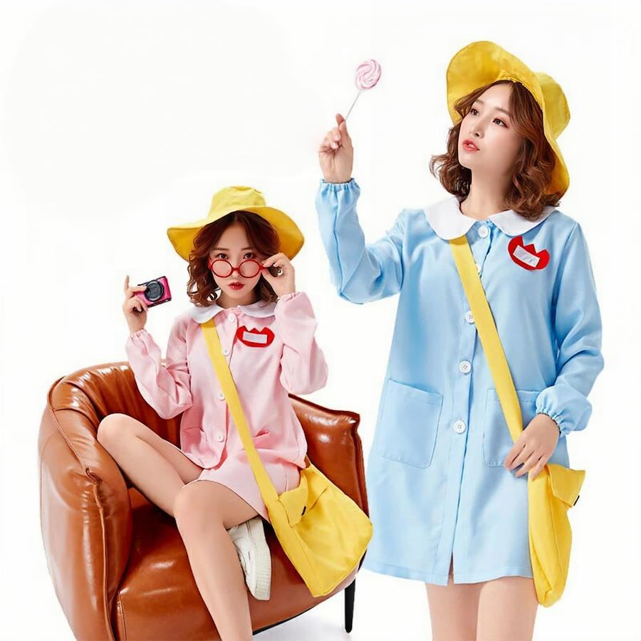 [JUNDOMECY] 幼稚園 園児 コスプレ 衣装 かわいい 定番 衣装 みずいろ ピンク 2色 お得な4点フルセット(スモック、帽子、バッグ、名札) ようちえん 制服 仮装 ハロウィン イベント余興 学園祭 コスプレパーティー (みずいろ)
