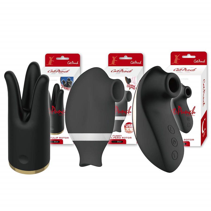 K・F・C とれたてCatPunchボックス(ブラック)~3種のキュートなローターバイブ詰め合わせSET~