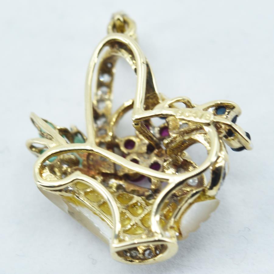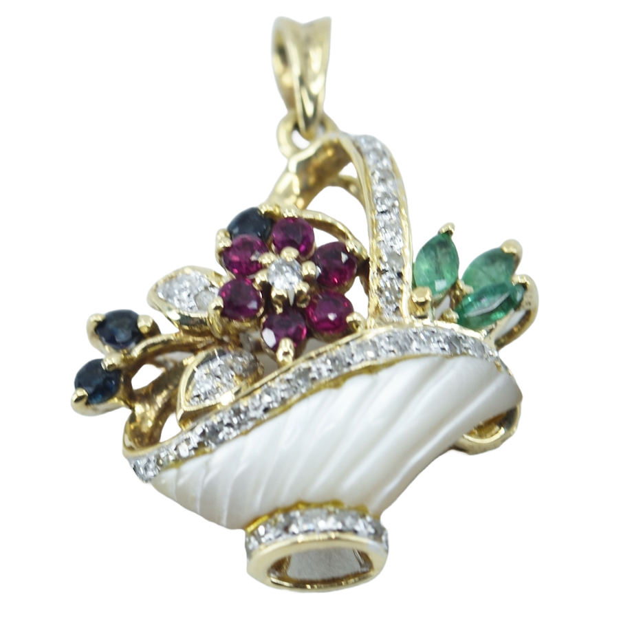 【アイテム名】K14 フラワーバケット型ペンダントトップ 色石付