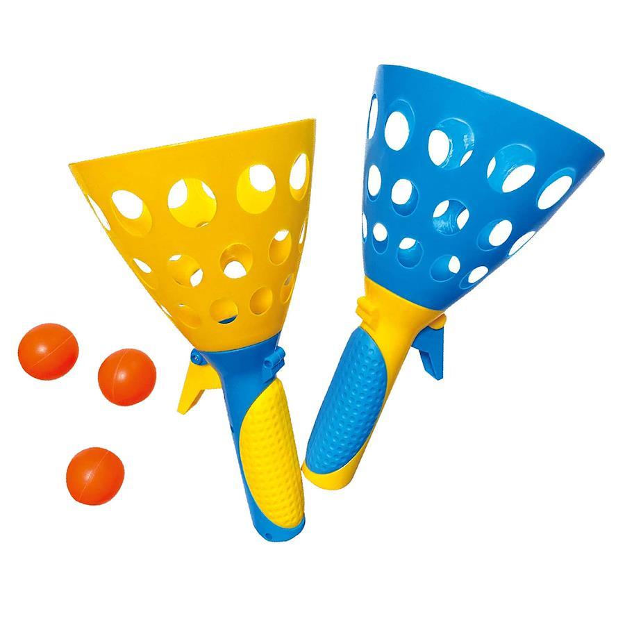 ●キャッチャーでピンポンボールを打ったり、キャッチしたり、連続ラリーを楽しもう!※周囲の安全を確認の上、ご使用ください。※直射日光があたる場所、高温多湿な場所には保管しないでください。※人や動物に向けて飛ばさないでください。※目や顔を狙わないでください。 セット内容:キャッチャー2個・ピンポンボール3個 サイズ:キャッチャー/約125×125×243mm ピンポンボール/約30mm 材質:本体/ポリプロピレン ボール/ポリエチレン 対象年齢6歳以上 屋外用 生産国:中国