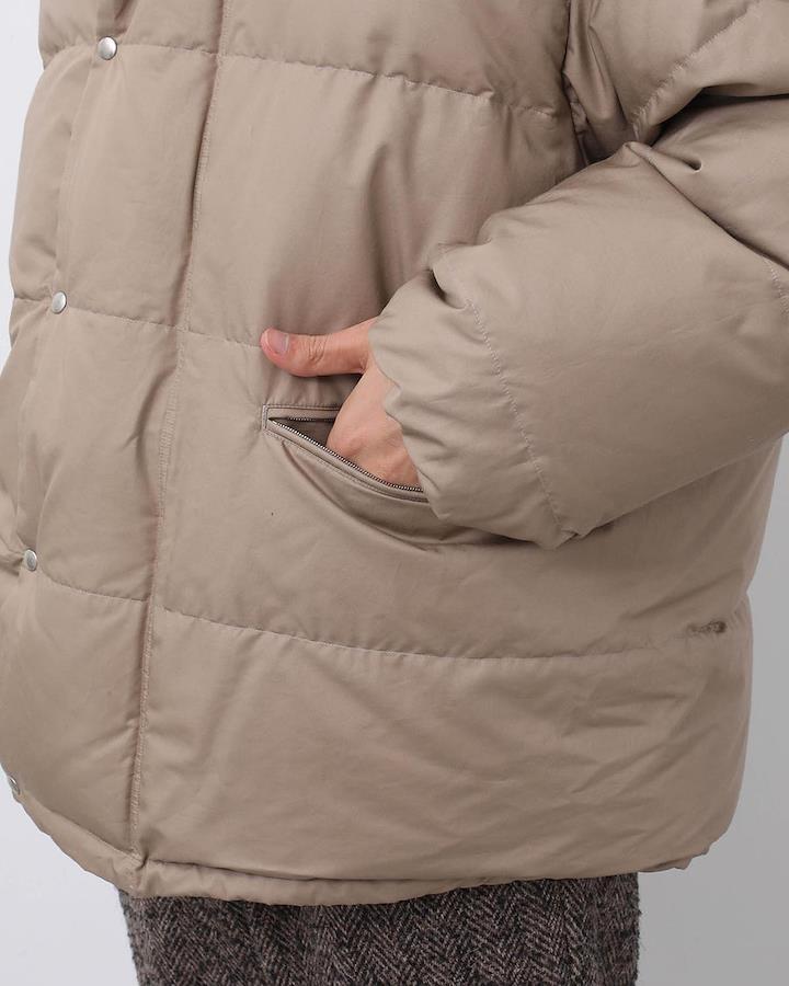 最高級の細番手コットンを使用した超高密度コットンサテン。ダウンジャケット用に特殊シリコンコーティングを施すことで、ハリと撥水性に優れています。750フィルパワー。日本製。お手入れ方法:洗濯不可、漂白剤使用不可、タンブル乾燥不可、高温乾燥、アイロン使用可、ドライクリーニング可、ウェットクリーニング不可。サイズ2:着丈…72cm、胸囲…66cm、肩幅…52cm、袖丈…64cm。サイズ3:着丈…74cm、胸囲…69cm、肩幅…54cm、袖丈…65cm。サイズ4:着丈…76cm、胸囲…71cm、肩幅…56cm、袖丈…67cm。サイズ5:着丈…78cm、胸囲…73cm、肩幅…58cm、袖丈…69cm。