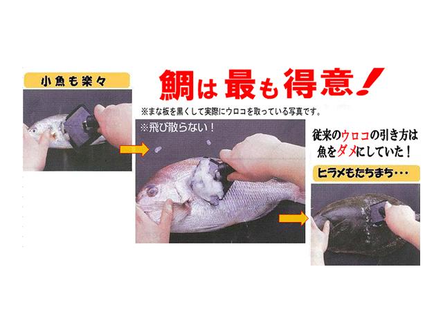 ・ウロコが飛び散ず、陽炎ビブリオなど菌の飛散を防ぐ。・今までにない幅広い魚に対応できる。・ウロコをとる準備、片付けが簡単。