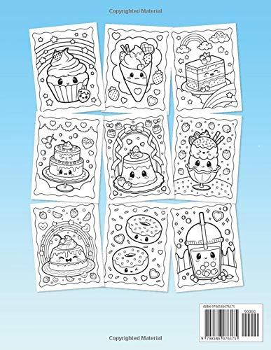 This Kawaii Sweet Treats Coloring Book is filled with great variety of 50 different super cute and adorable dessert, cupcake, donut, candy, ice cream, chocolate, food, fruits characters in various scenes!