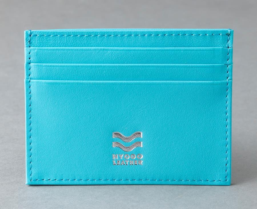 【KAWAORI】水色のカードケースです。中に兵庫県の地場産業である播州織が使用されています。受注生産品ですのでご注文から発送まで、2ヶ月ほどお時間をいただきます。