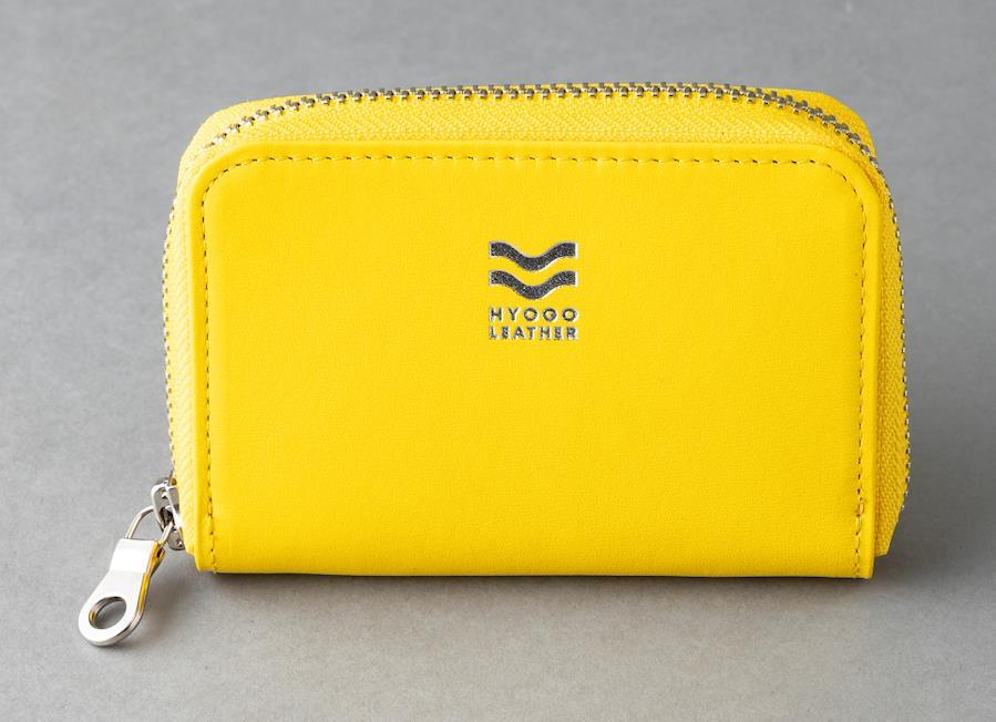 【KAWAORI】黄色のラウンド財布です。中に兵庫県の地場産業である播州織が使用されています。受注生産品ですのでご注文から発送まで、2ヶ月ほどお時間をいただきます。