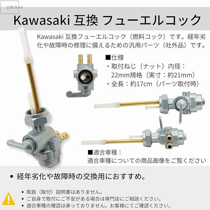 カワサキ(KAWASAKI)互換(社外品)、取付ねじ22mm規格対応(実寸約21mm)、汎用のバイク用フューエルコック(燃料コック)です。