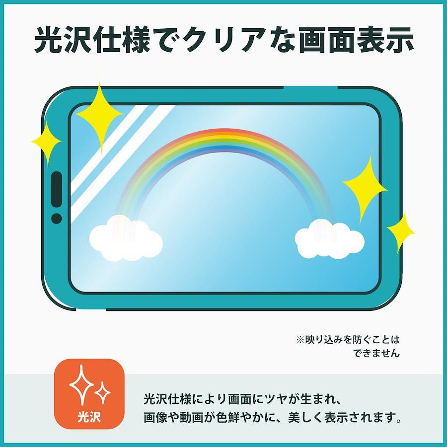 ◎商品説明◎《1》表面硬度がガラスフィルムと同等の9Hと非常に強いので、画面を傷や衝撃からしっかり守ることができます。《2》ブルーライトを48%、紫外線を99%カットすることにより、目の負担を軽減します。《3》光沢仕様。画面や動画にツヤを与えて美しく表示させることができます。※映り込みは防げません。《4》表面の撥水コーティングにより水を弾き、水漏れからデバイスを守るので安心してご使用いただけます。《5》抗菌処理により、細菌の繁殖を防ぎます。清潔な画面を維持したい方におすすめです。