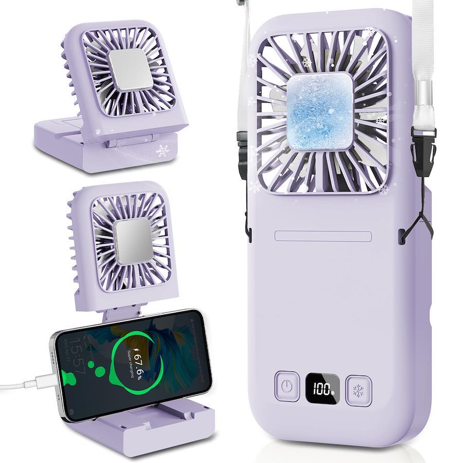 Kemolpo ハンディファン 冷却プレート 2025 大風量 接触冷感 ハンディ扇風機 5WAY(手持ち 首掛け 卓上 モバイルバッテリー スマホスタンド) 風量5段階 6000mAh 長時間稼働 電池残量液晶表示 USB充電 Type-C対応 180度角度調節 折り畳み 小型 軽量 薄型 ストラップ付き 持ち運び便利 (ラベンダー)