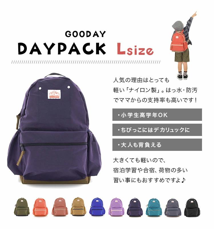 【デイパック GOODAY】小学校の高学年から、大人まで幅広い年代の方に◎たっぷり入る大容量のOCEAN&GROUNDの定番デイパック Lサイズ。開閉しやすいYKKファスナーを使用し、広いマチに全面とサイドにもポケットが2つありペットボトルもすっぽり入ります。高学年の子から大人まで使えるサイズ感で幅広い年代にオススメです。