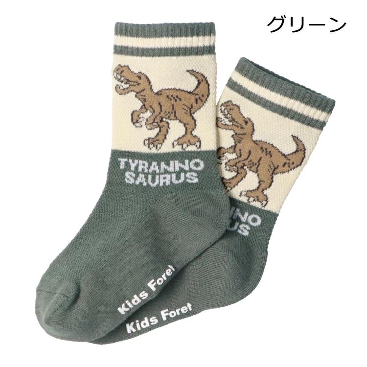 靴下は送料合わせにもオススメなアイテム。対応サイズは14cm(13~15cm)、17cm(16~18cm)、20cm(19~21cm)です!足裏にお名前を書く欄があります!男の子に人気の恐竜柄のクルーソックス、靴下です。グリーンはティラノサウルス、ネイビーはトリケラトプスです。 【アイテム】雑貨 カジュアル お洒落 オシャレ かっこいい かわいい 可愛い 普段着 デイリーウェア お出かけ 子ども こども 男児 男の子 ボーイズ キッズ ベビーサイズ トドラーサイズ 幼稚園 保育園 小学校 通園 通学 小学生 遠足 旅行 2025年春夏物新作 丸高衣料 小物 キッズフォーレ 緑色 紺色 ダイナソー