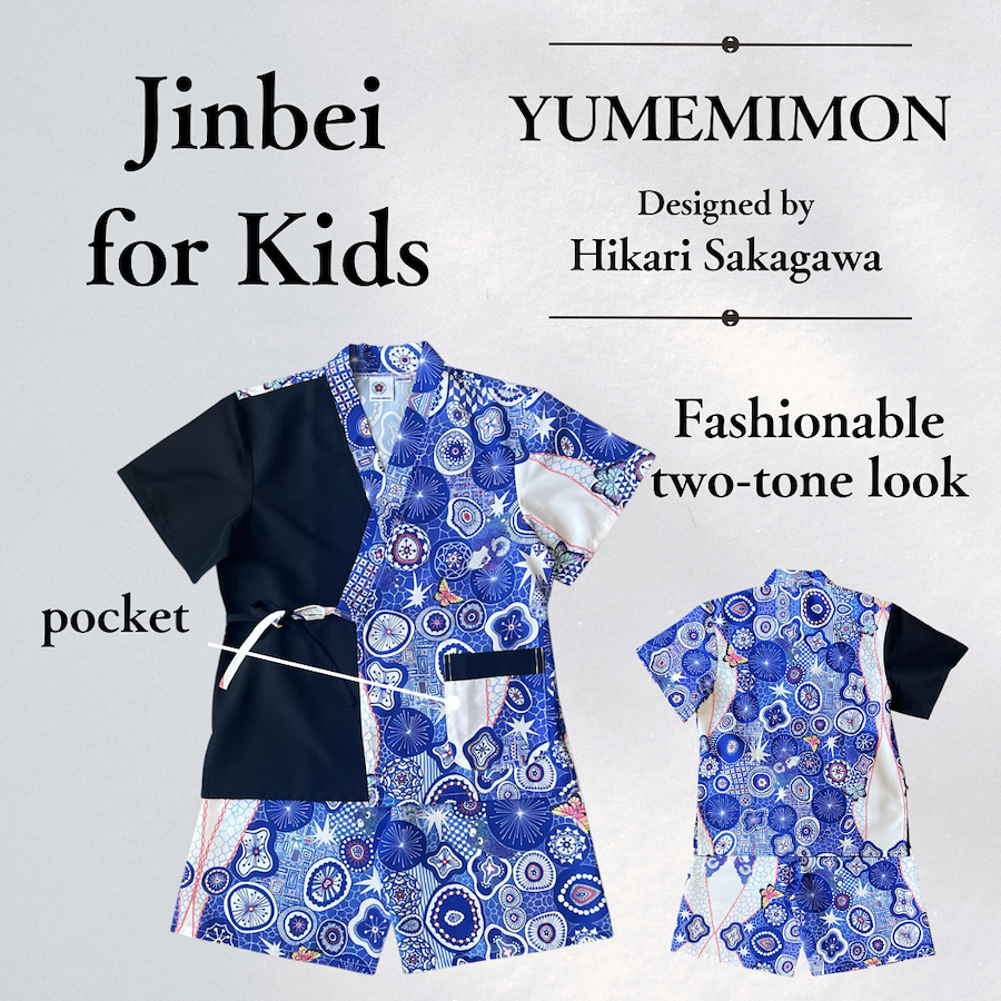 九谷焼作家が描く文様 キッズ甚平 上下セット 夢見紋【KUTANI*KIMONO】