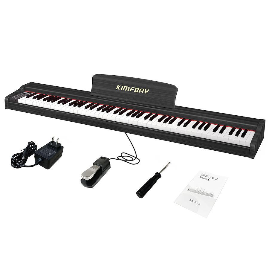 【優れた音質】 KIMFBAY電子ピアノは、先進的なフランス製Dream5504サウンドチップを搭載し、高品質なサウンドの旅をお届けします。明るい高音と暖かい低音を再生するデュアルスピーカーを搭載しています。ユニークな木目調のデザインは、どんな空間にもエレガントさをプラスし、インテリアのスタイリッシュなアクセントになります。 【フィンガーセンサー電子ピアノ 88鍵盤】88個のフルサイズのセミウェイトキーが力の感覚を軽減し、より敏感なタッチ応答を提供します。ピアノの鍵盤を弾く強さによって音量が変化します。滑らかなキーは演奏中の滑りを防ぎ、色褪せを防ぎ、高い輝きが長く続きます。 【豊富な機能】ピアノ鍵盤には膨大な音楽ライブラリがあり、128音色、128ポリフォニー、88デモ曲、100リズムを提供します。サスティン、録音/再生、メトロノーム、コード、デュアル鍵盤、トランスポーズなど、実用的で便利な機能も多数搭載しています。初心者でも経験豊富なミュージシャンでも、KIMFBAY ピアノ キーボードは新しい音楽の地平を探求し、全体的な演奏体験を向上させるのに役立ちます。 【MIDI&ワイヤレス接続】この電子キーボードは標準的なMIDI入出力、USB、ワイヤレス接続をサポートしており、より多くのスマートデバイス/アプリを接続し、より面白い音楽パフォーマンスを探求することができます。3.5mmヘッドフォンジャックを搭載しているので、他の人に邪魔されることなく、いつでも学習を楽しむことができます。 【付属品】電源(PES認定)、電子ピアノ 88鍵盤日本語マニュアル、シングルペダル。 ご購入日より30日以内は無条件返品・返金保証、1年間は無料修理いたしますので、安心してお買い求めください。 ご不明な点がございましたら、注文履歴より出品者にお問い合わせください。