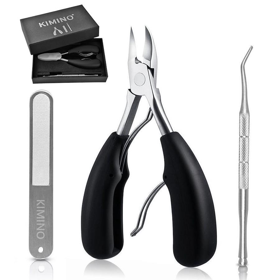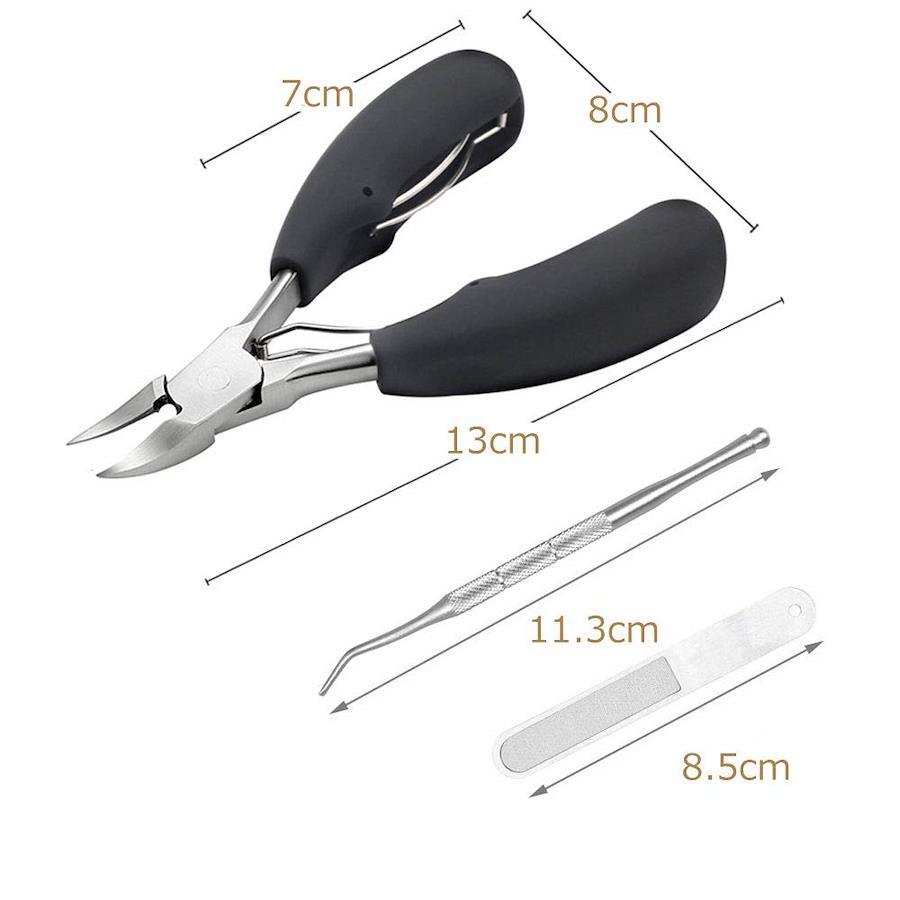 【巻爪用ニッパーつめきり】硬い足爪、巻爪、変形爪のカットに最適なクラシックタイプ(ニッパー)の爪きりです。ニッパー先端は爪に沿わせやすい形状になっているので、足の親指の食い込みや陥入爪・巻き爪などの変形した爪の細かい部分まで綺麗にカットできますおかげ様で大人気の【爪切り ニッパー式】はいま、低品質の偽物を販売している業者が多発しております。 【職人仕上げ&切れ味抜群】刃には厳選した特殊浸炭材を使用し、高硬度焼き入れと二度刃付け技術により、鋭利性(よく切れる)と耐久性に優れています。また、熟練の職人による最終仕上げの研磨と調整によって、優れた切れ味が持続します。 【爪やすり&ゾンデ付き】熟練のスペシャリストが丹念に仕上げた逸品のステンレス製爪切り、爪ヤスリとゾンデのセットです。爪切り前のケアに、34°湾曲設計のゾンデで爪の横や内側に溜まった垢や汚れを掻き出すことができ、使い勝手が大変良い商品です。ヤスリ面は特殊加工されており、爪切り後に爪の角を削ることでなめらかに仕上げることができます。 【握りやすいグリップ】グリップには弾性があるABS樹脂を採用し、ソフトな手触りに加え、滑り止めの効果を向上させました。また、くぼみのある設計のため、親指にピッタリとグリップがフィットし、どちらの手で握っても持ちやすく使い心地がくなっています。※スプリングが二本ありますが、使用中片方のスプリングを引き上げればようろしいです。もう一つのスプリングは予備品です。 【ギフトにも最適】刃先をいためず収納時に便利なキャップ付き。ギフトボックス(収納用)に入れてお届けするので、父の日や母の日、年配の方への贈り物としても喜ばれる逸品です。 高品質の製品をお客様に差し上げられるように努力し続けております。
