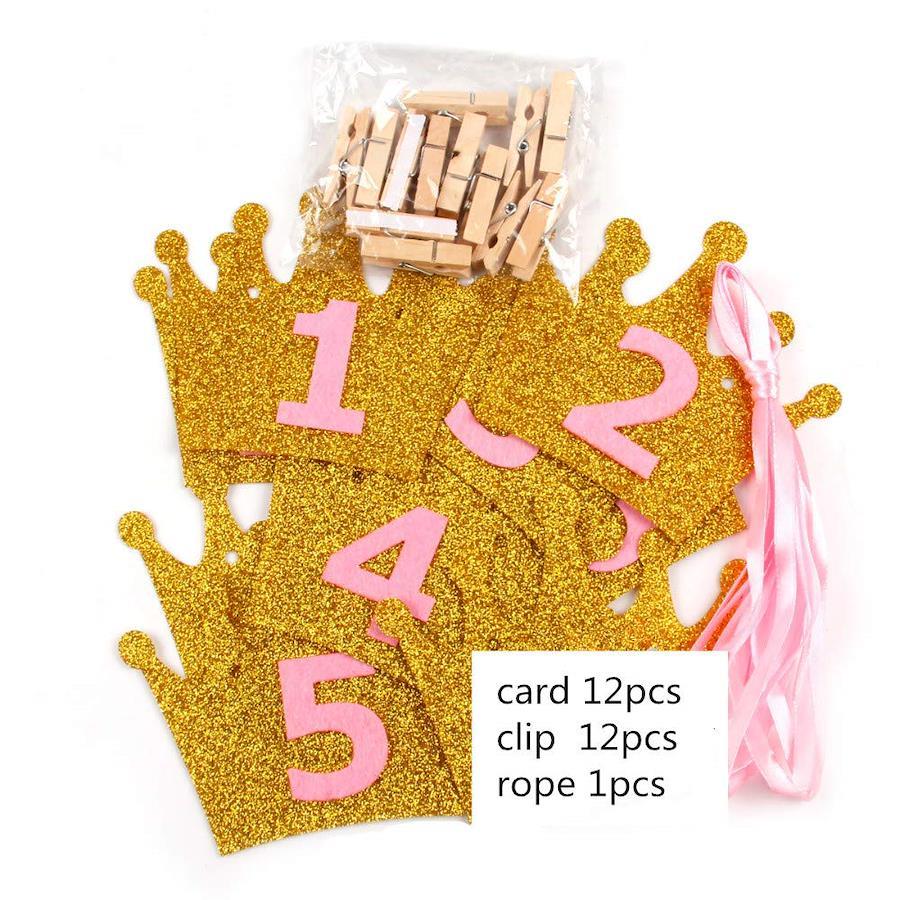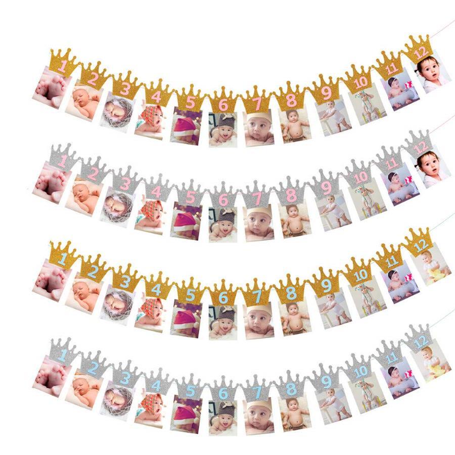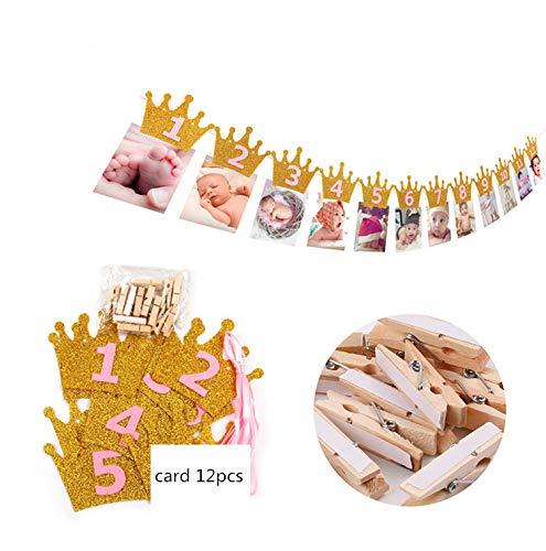 3営業日以内に発送≪新品未開封品≫メイン素材:紙クラウン型バナーのサイズ:12*10cm 紐長さ:3mキラキラデとても綺麗です。クリップも付いているので、赤ちゃんの可愛い写真を展示するのに非常に便利です。赤ちゃんの誕生日パーティーに大活躍! ベビーの部屋を可愛くするインテリアとしてもオススメ。パッケージ:1セット(クラウン型のカード12枚+クリップ12個+紐1本) 写真が含まれておりません。