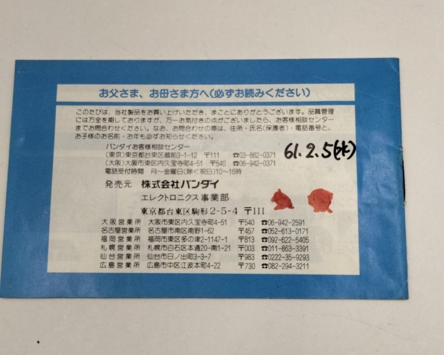 ■備考箱に少々劣化あります。取扱説明書の裏側に日付の記載あります。
