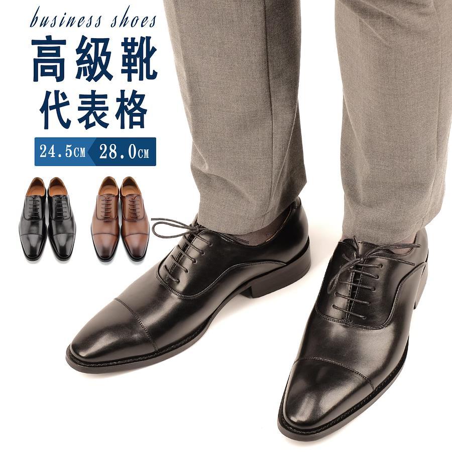 [KIXSTAR] ビジネスシューズ メンズ 革靴 紳士靴 防水 ストレートチップ メンズ ブラック 25.5 cm