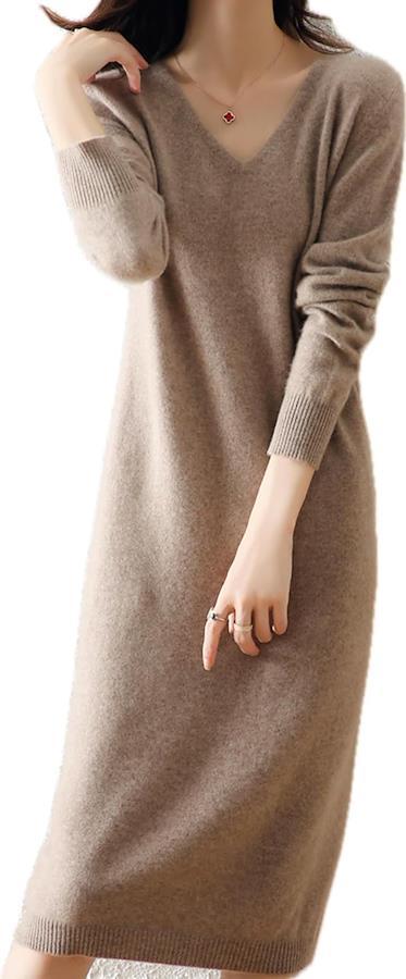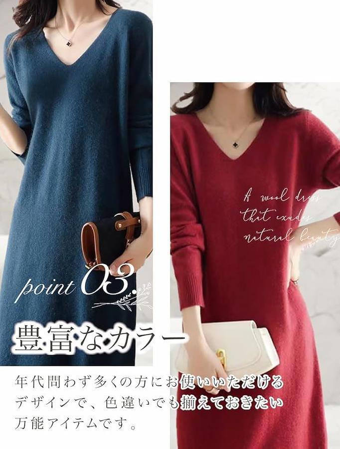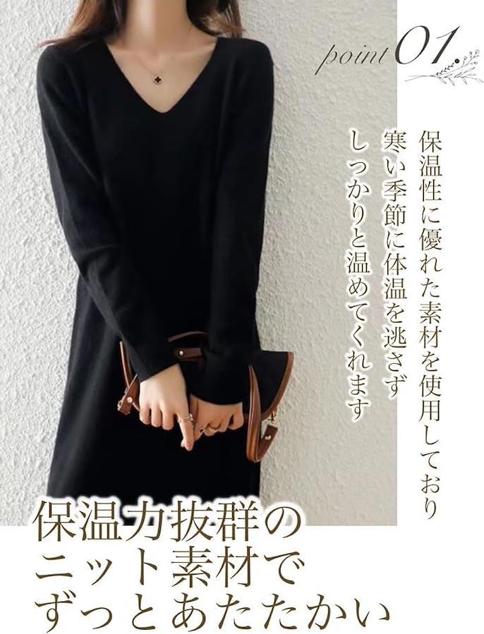 「スタイルアップ」一枚で洗練されたスタイルを実現するVネックニットワンピース。
