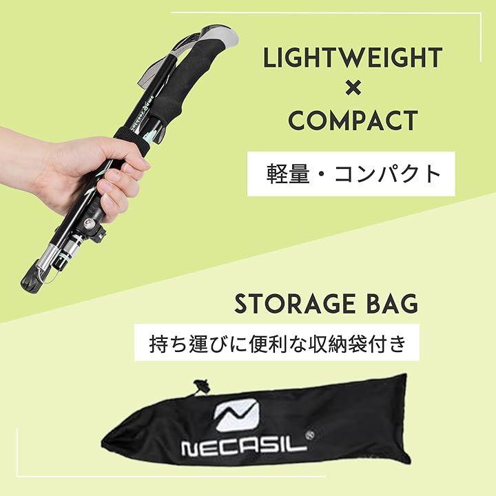 「コンパクト収納」1本格納で 3本に折りたためる4段折式 で、収納時は、約300グラムの軽量、わずか約34cmに たたんで持ち運べます。