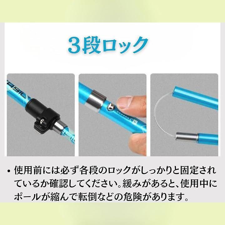 「調整可能なフリーサイズ」簡単調整で、身長に合わせてポールの高さを110-125cm(実質92-128cmでゆとりを持たせています)の範囲で簡単にさまざまな身長や地形に合わせて無段階調整可能です。