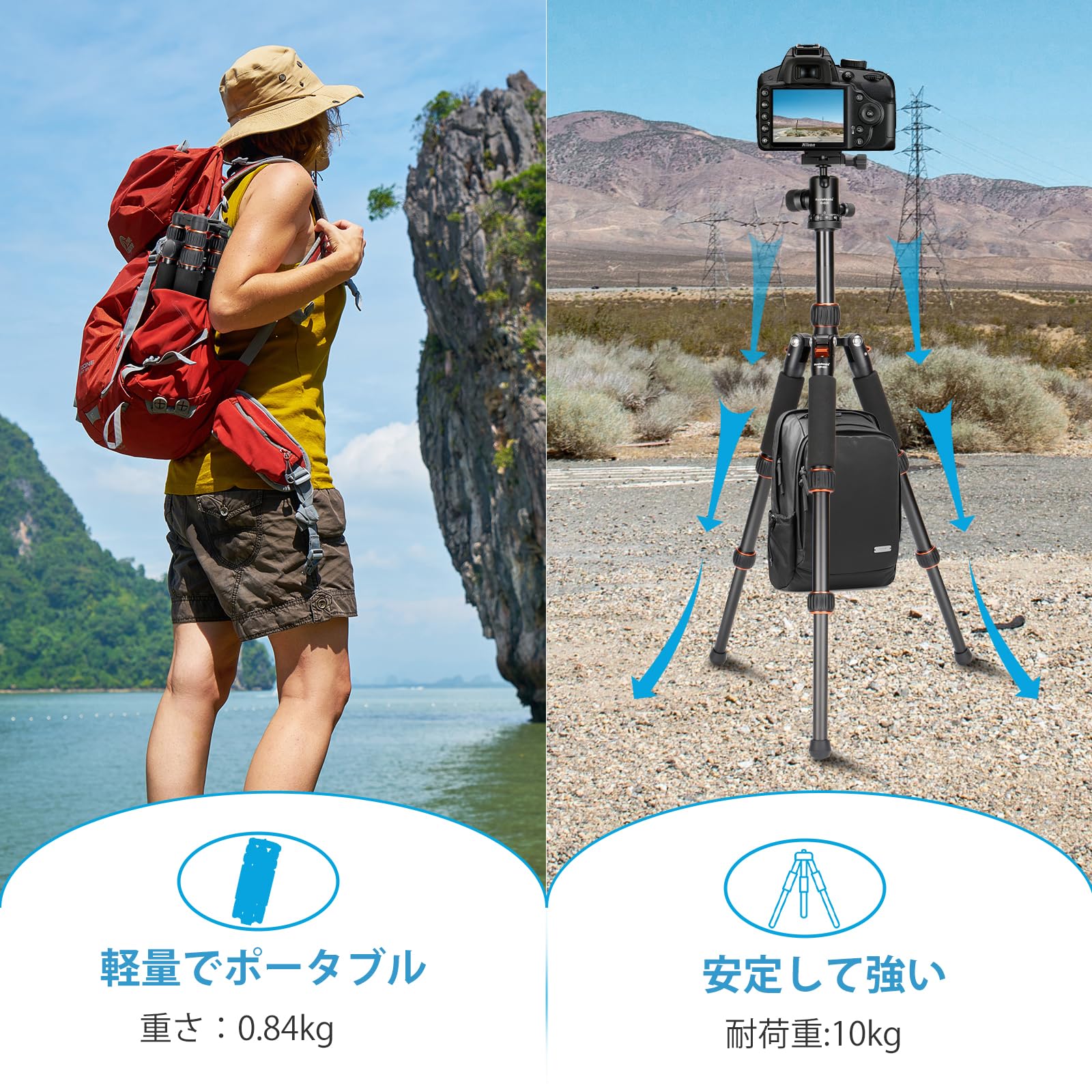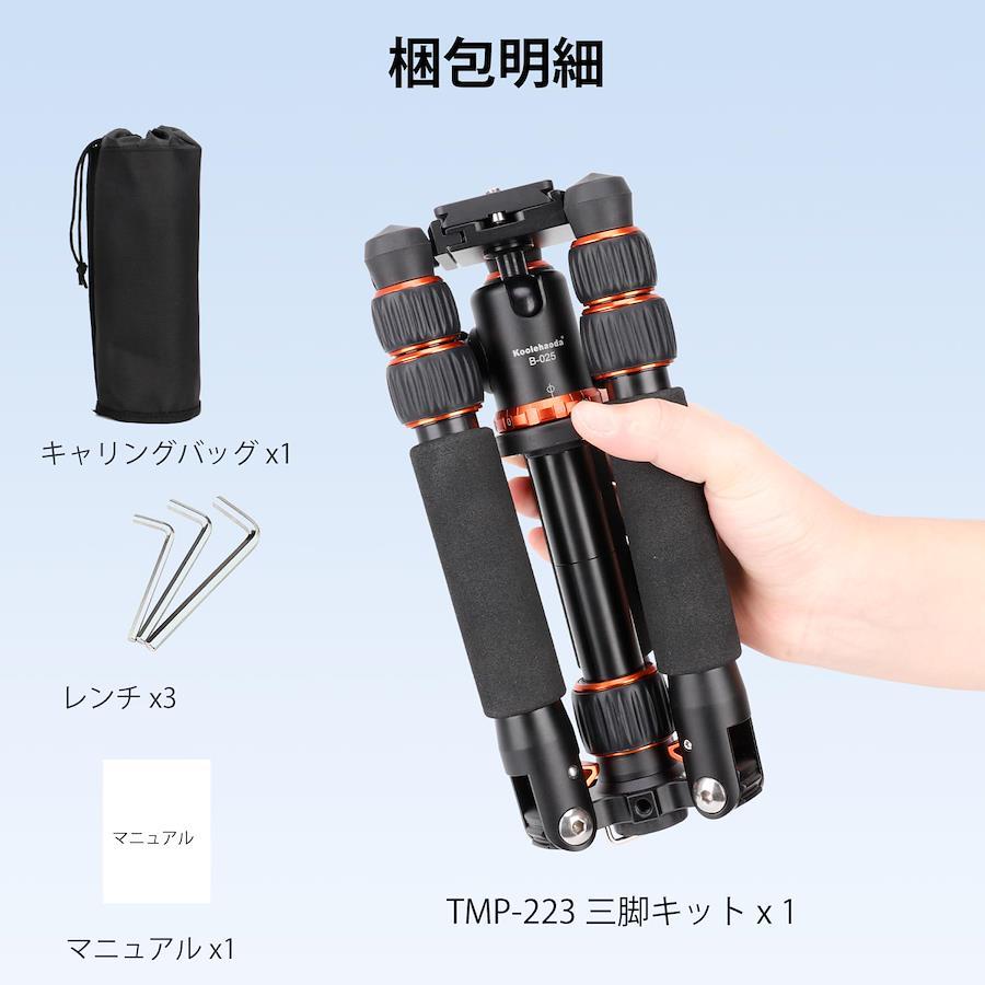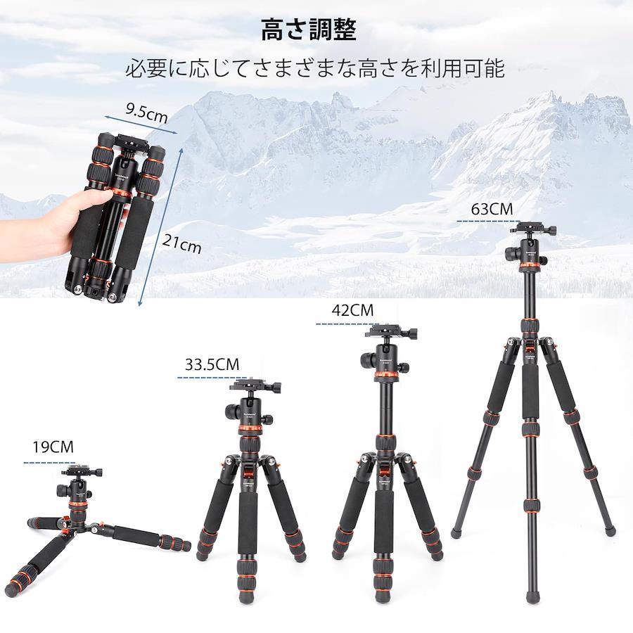 3営業日以内に発送≪新品未開封品≫:Koolehaoda ミニ三脚 カメラ三脚 アルミ合金 コンパクト旅行三脚 自由雲台付き 3段調整 最大63.5CM 荷重10kgデジタルカメラ 一眼レフカメラ ミラーレスカメラ アクションカメラなど対応(オレンジ)