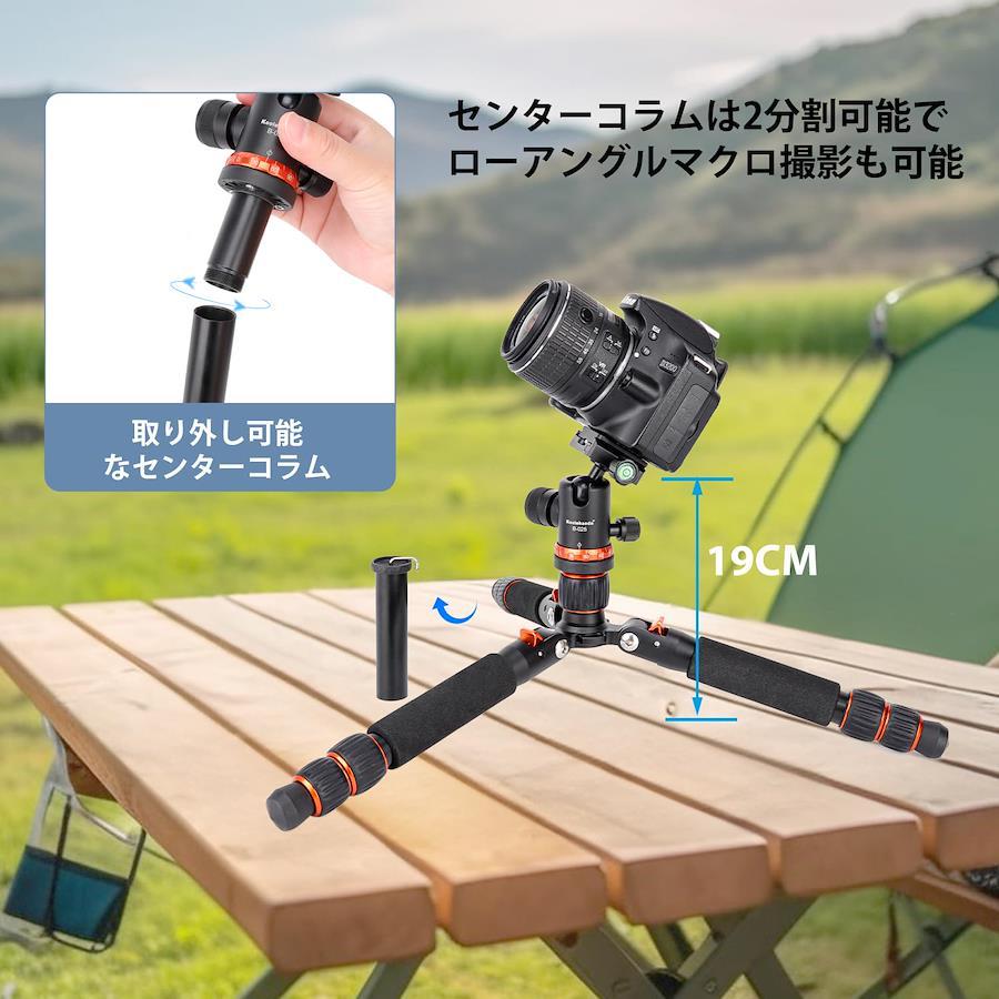 【多機能三脚】3 段階の脚角度調整システムにより、柔軟な射撃が可能です。 最大作業高さは 63.5 cm、ミニ作業高さは 21 cm、取り外し可能な 2 セクション センター コラム設計により、ローアングル撮影を実現できます。