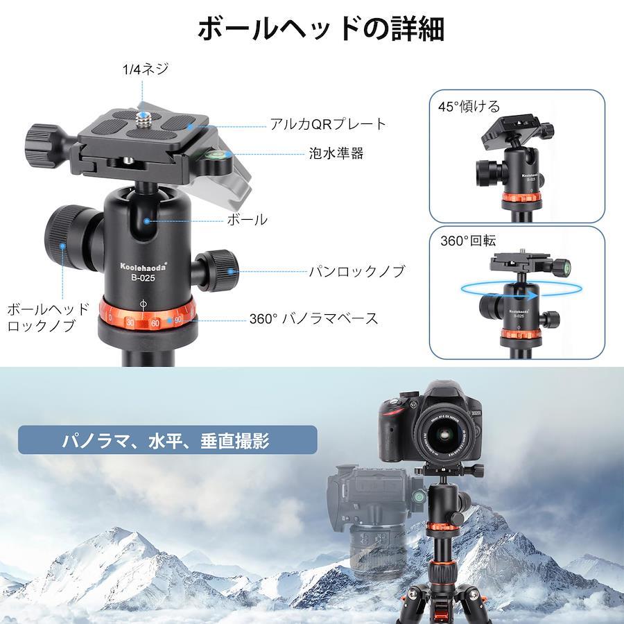 【360度パノラマ雲台】ボールヘッドを搭載、カメラの向きを楽に調整でき、自由にフレーミングを可
