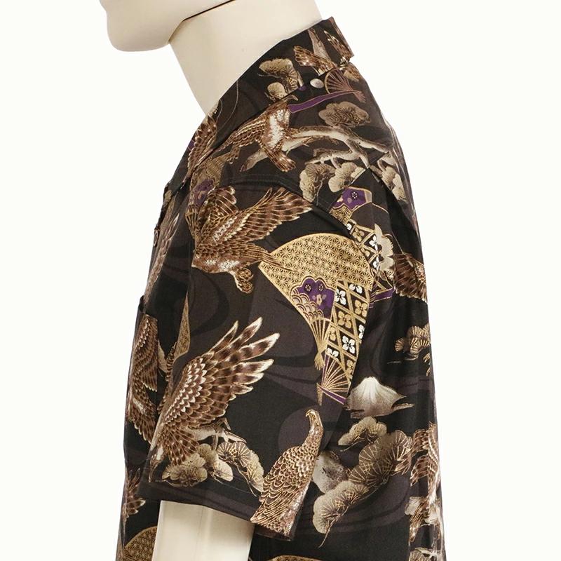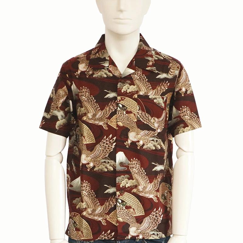 富士と鷹 柄 シーチング素材 コットン アロハシャツ