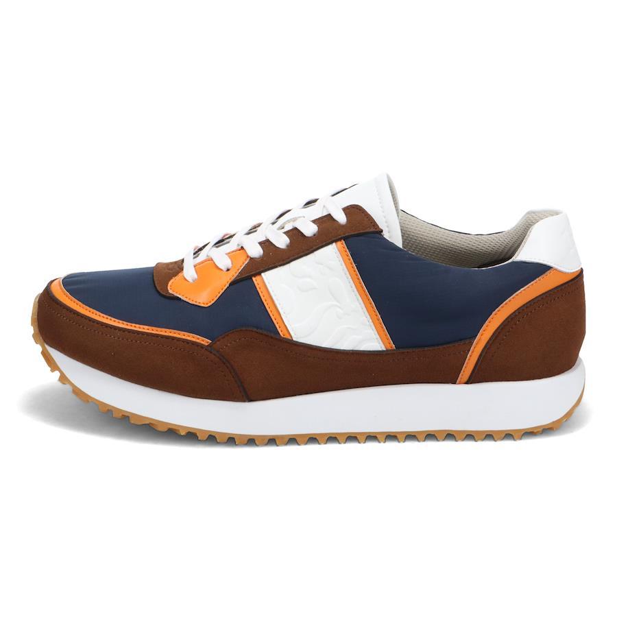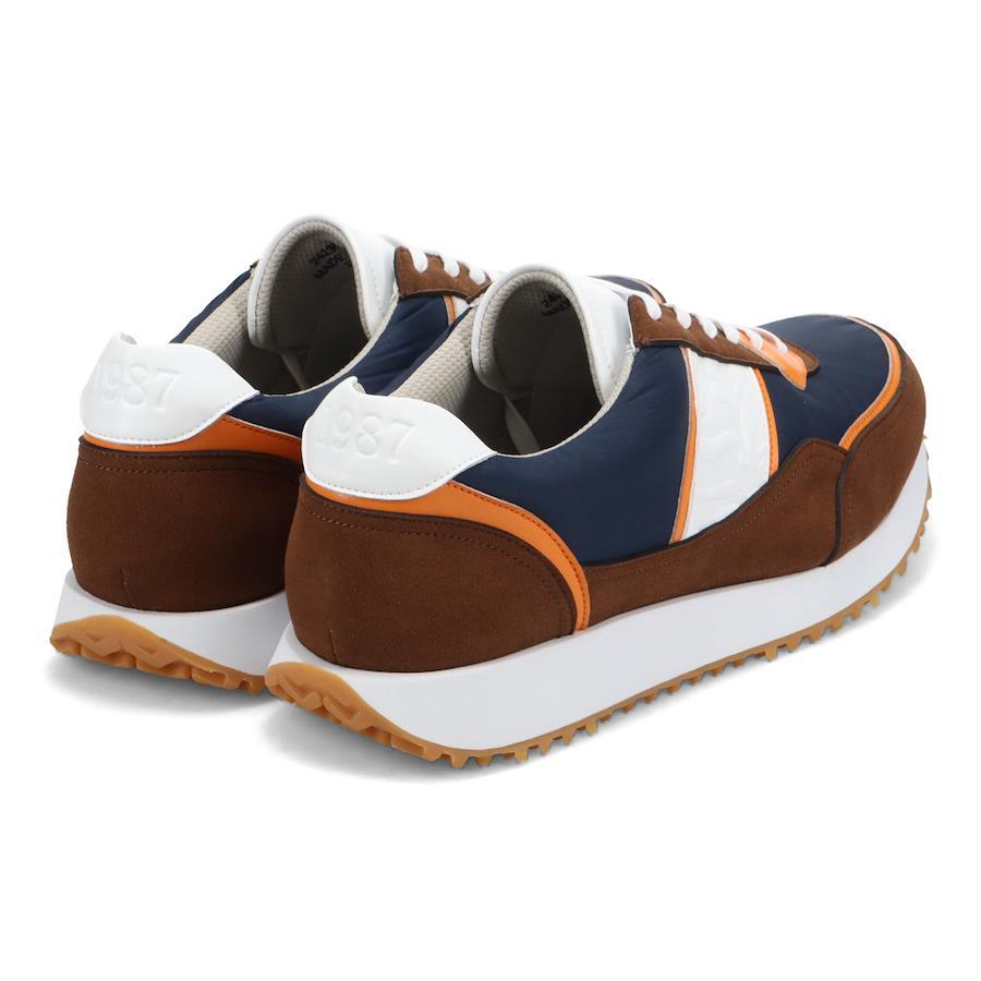 | 隈取ロゴスニーカー 【素材】 撥水機能のある生地とPU素材を使用。 【デザイン】 ジョギングシューズをもとにwhoop-de-dooながらのカラーリングと遊び心を加え構築したジョグタイプスニーカー。サイドには顔を覗かせる隈取ロゴの型押しと踵パーツの創業年である1987をデザインし、ブランドを最大限に押し出しました。 スタイルの主役になるようなスニーカーは着用するだけで目を引くこと間違いなし。軽量のEVAと凹凸の効いたラバーを組み合わせたアウトソールで足運びも軽快に。 【サイズ】 普段革靴で25.5cm、ライニングやインソールにクッションが入っているスポーツ系スニーカーで26.5〜27.0cmを使用するスタッフで<42/26.0cm>がちょうどよかったです。大きいサイズにつきましてはスポーツ系スニーカーで29.0~29.5cmを使用するスタッフで〈46/28.0cm〉がちょうどよかったです。当モデルは1cm刻みのサイズ展開になります。 ※サイズ感は、個人差がございますのであくまで参考程度にお考え下さい。 ■ブランド:フープディドゥ ■カラー:ダークブラウン/ネイビー、ライトグレー/ホワイト、ネイビー/ライトグレー ■アッパー素材:生地/人工皮革 ■底材:合成ラバー ■ソール:約2.3cm ■ヒール:約3.3cm ■重さ(片足)約:331g ■製法:セメント製法 ■中国製 *上記は全て25.5cmで計測した数値です。 *多少の誤差が生じる場合がございますので予めご了承下さい。 whoop de doo co.,ltd whoop'-de-doo' フープディドゥ |