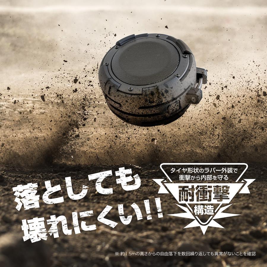 タイヤ形状のラバー外装で衝撃から内部を守る耐衝撃構造