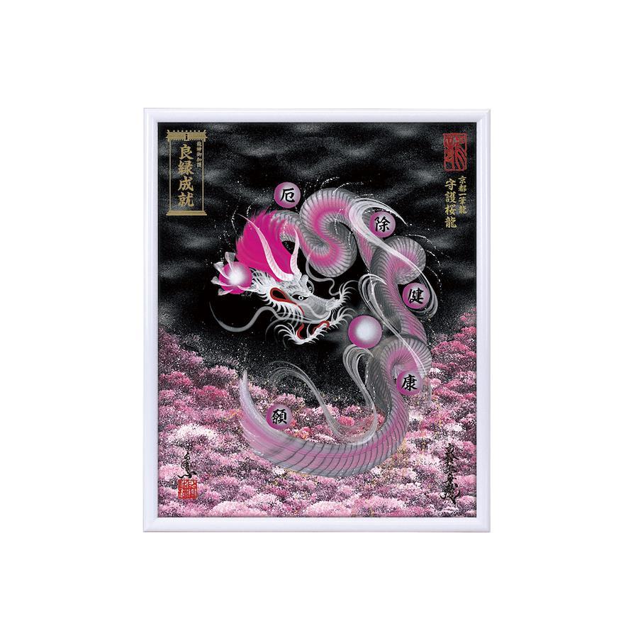 【商品の特徴】・京都一筆龍描画の種類/色彩は【26種】よりお選びいただけます<昇運龍14種(双龍5種/1体龍9種)> <守護龍10種(双龍2種/1体龍8種)> <縁結び龍2種(双龍2種)>・『京都一筆龍の御加護/御利益の象徴=胴体部分を一切途切れさせず一筆で描く動画』のQRコード印字ステッカー(2色/4サイズ)を同封お納めいたしております・描画に記載可能なお願い事は6種のご祈願内容より御選定いただけます心願成就/事業繁栄/金運上昇/健康祈願/家内安全/良縁成就・国内生産の高級額縁(デッサン額)を使用。額縁の色/機能は7種よりお選びいただけます。・龍の眼に光を宿し生気を吹き込む『龍の瞳(ラインストーン)』加工・京都一筆龍絵師手島啓輔署名、落款入り・御贈答のご利用も多く、懇切丁寧な包装