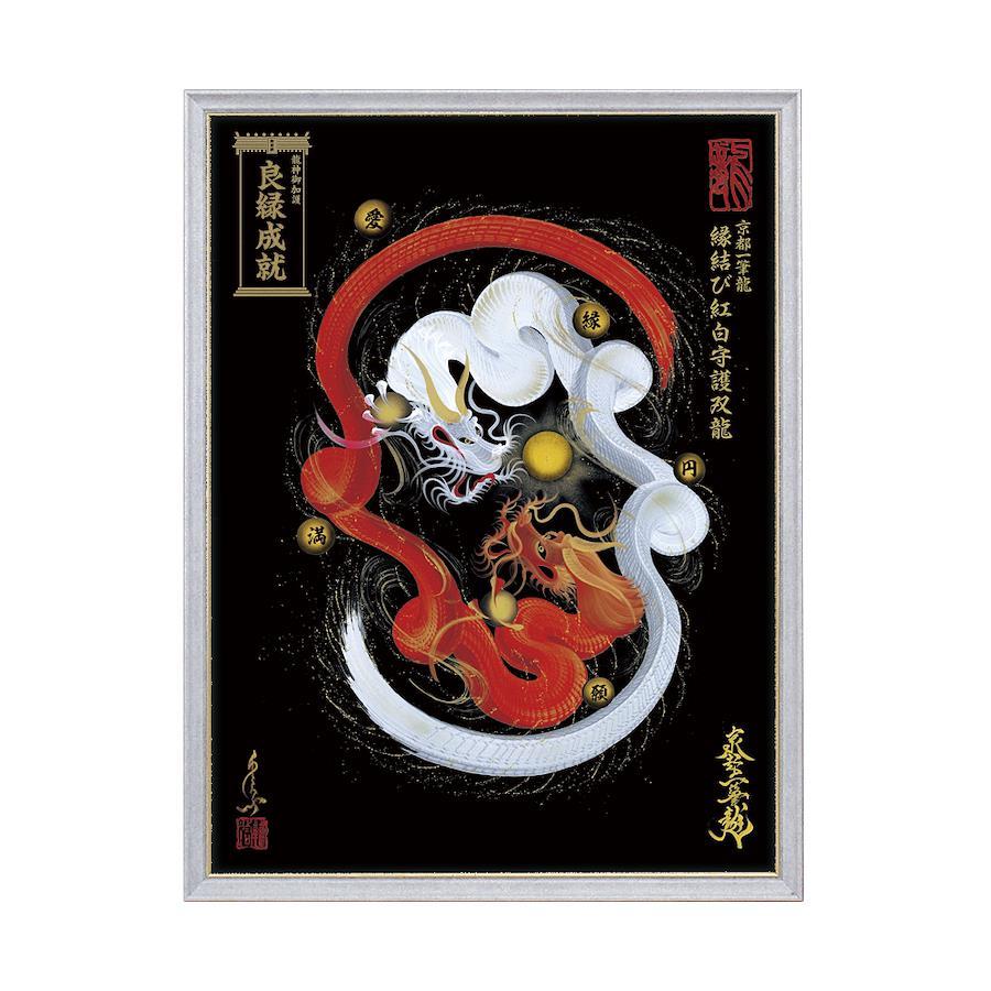 【商品の特徴】・京都一筆龍描画の種類/色彩は【26種】よりお選びいただけます<昇運龍14種(双龍5種/1体龍9種)> <守護龍10種(双龍2種/1体龍8種)> <縁結び龍2種(双龍2種)>・『京都一筆龍の御加護/御利益の象徴=胴体部分を一切途切れさせず一筆で描く動画』のQRコード印字ステッカー(2色/4サイズ)を同封お納めいたしております・描画に記載可能なお願い事は6種のご祈願内容より御選定いただけます心願成就/事業繁栄/金運上昇/健康祈願/家内安全/良縁成就・国内生産の高級額縁(デッサン額)を使用。額縁の色/機能は7種よりお選びいただけます。・龍の眼に光を宿し生気を吹き込む『龍の瞳(ラインストーン)』加工・京都一筆龍絵師手島啓輔署名、落款入り・御贈答のご利用も多く、懇切丁寧な包装