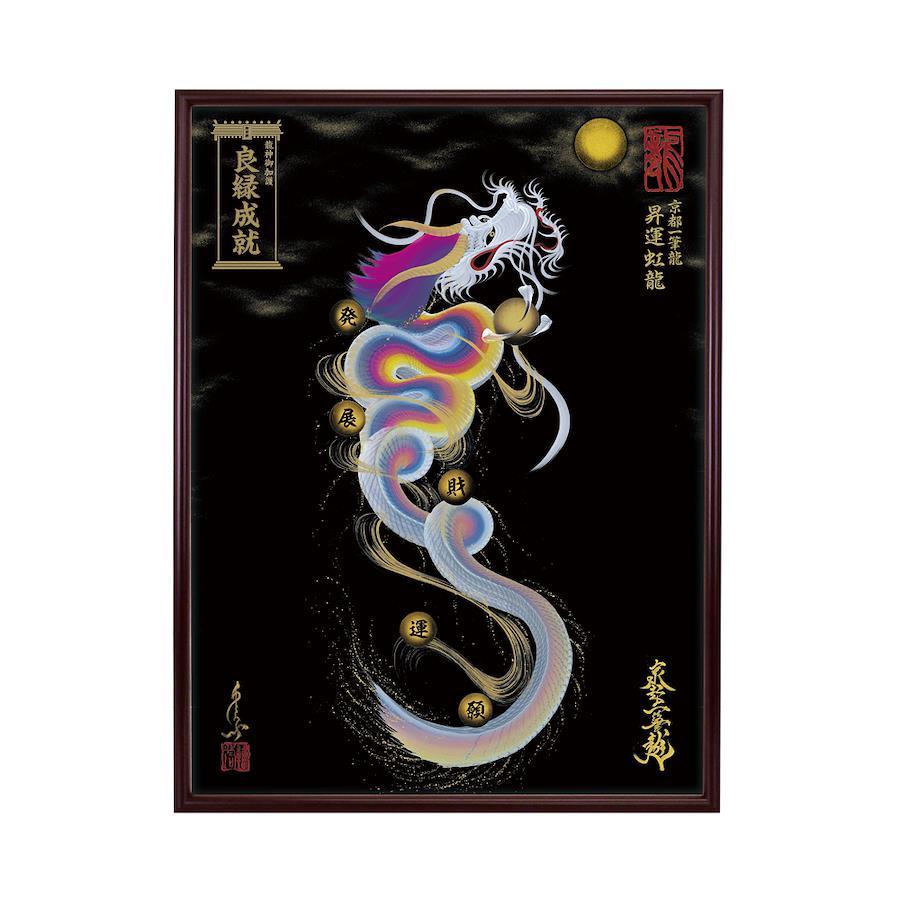 【商品の特徴】・京都一筆龍描画の種類/色彩は【26種】よりお選びいただけます<昇運龍14種(双龍5種/1体龍9種)> <守護龍10種(双龍2種/1体龍8種)> <縁結び龍2種(双龍2種)>・『京都一筆龍の御加護/御利益の象徴=胴体部分を一切途切れさせず一筆で描く動画』のQRコード印字ステッカー(2色/4サイズ)を同封お納めいたしております・描画に記載可能なお願い事は6種のご祈願内容より御選定いただけます心願成就/事業繁栄/金運上昇/健康祈願/家内安全/良縁成就・国内生産の高級額縁(デッサン額)を使用。額縁の色/機能は7種よりお選びいただけます。・龍の眼に光を宿し生気を吹き込む『龍の瞳(ラインストーン)』加工・京都一筆龍絵師手島啓輔署名、落款入り・御贈答のご利用も多く、懇切丁寧な包装