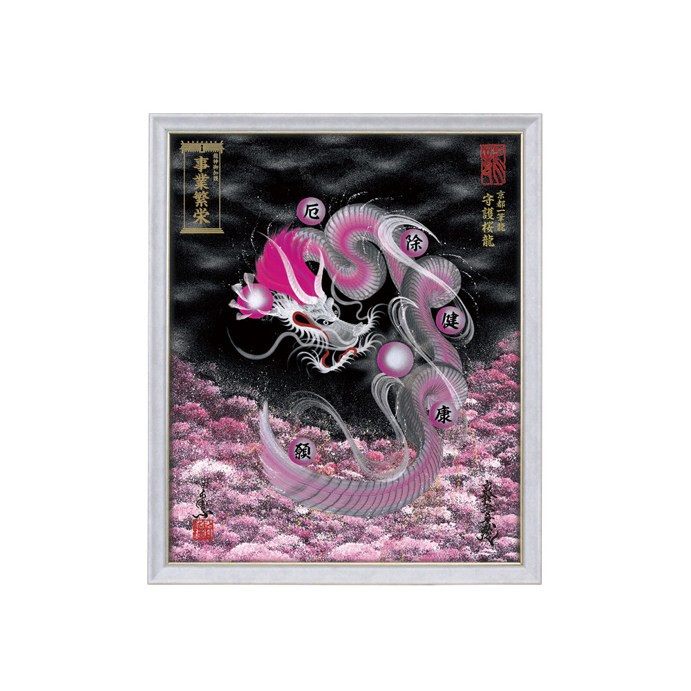 【商品の特徴】・京都一筆龍描画の種類/色彩は【26種】よりお選びいただけます<昇運龍14種(双龍5種/1体龍9種)> <守護龍10種(双龍2種/1体龍8種)> <縁結び龍2種(双龍2種)>・『京都一筆龍の御加護/御利益の象徴=胴体部分を一切途切れさせず一筆で描く動画』のQRコード印字ステッカー(2色/4サイズ)を同封お納めいたしております・描画に記載可能なお願い事は6種のご祈願内容より御選定いただけます心願成就/事業繁栄/金運上昇/健康祈願/家内安全/良縁成就・国内生産の高級額縁(デッサン額)を使用。額縁の色/機能は7種よりお選びいただけます。・龍の眼に光を宿し生気を吹き込む『龍の瞳(ラインストーン)』加工・京都一筆龍絵師手島啓輔署名、落款入り・御贈答のご利用も多く、懇切丁寧な包装