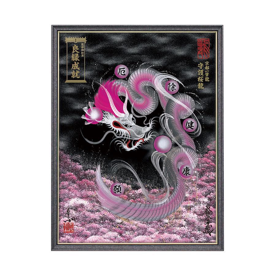 【商品の特徴】・京都一筆龍描画の種類/色彩は【26種】よりお選びいただけます<昇運龍14種(双龍5種/1体龍9種)> <守護龍10種(双龍2種/1体龍8種)> <縁結び龍2種(双龍2種)>・『京都一筆龍の御加護/御利益の象徴=胴体部分を一切途切れさせず一筆で描く動画』のQRコード印字ステッカー(2色/4サイズ)を同封お納めいたしております・描画に記載可能なお願い事は6種のご祈願内容より御選定いただけます心願成就/事業繁栄/金運上昇/健康祈願/家内安全/良縁成就・国内生産の高級額縁(デッサン額)を使用。額縁の色/機能は7種よりお選びいただけます。・龍の眼に光を宿し生気を吹き込む『龍の瞳(ラインストーン)』加工・京都一筆龍絵師手島啓輔署名、落款入り・御贈答のご利用も多く、懇切丁寧な包装